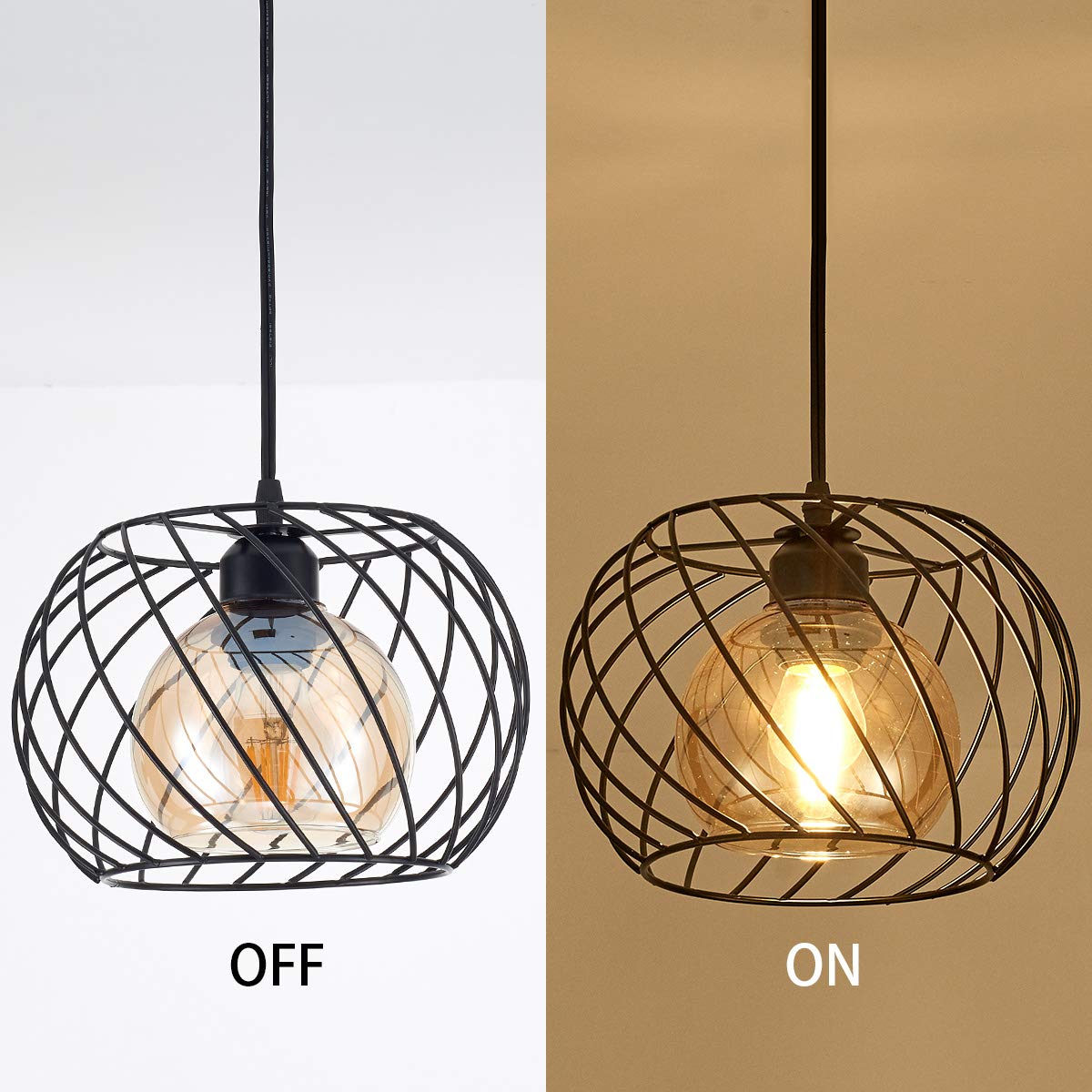 Ylong-Zs Dimmer Plug-In Pendant Light, Amber Glass Shade, Black Finish For Kitchen & Hallway