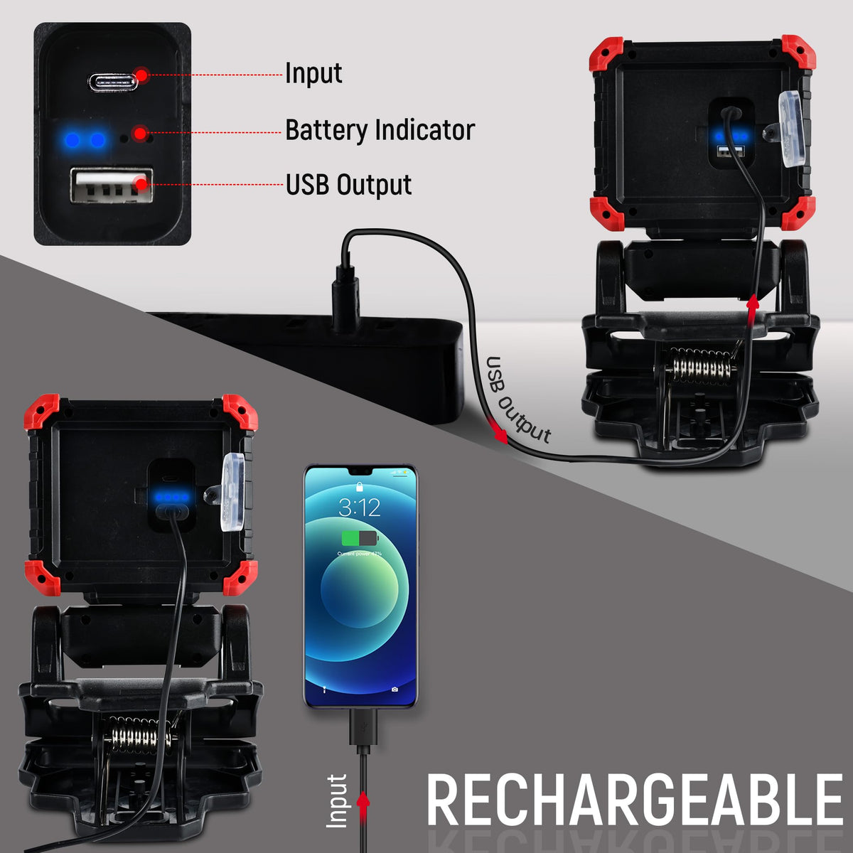 Q: What features make the Yls LED Work Light portable and convenient for use on job sites?A: The Yls LED Work Light is designed for portability with its lightweight construction, built-in handle, and clip for easy attachment to work areas. It also serves as a mobile power source for charging devices in emergencies.