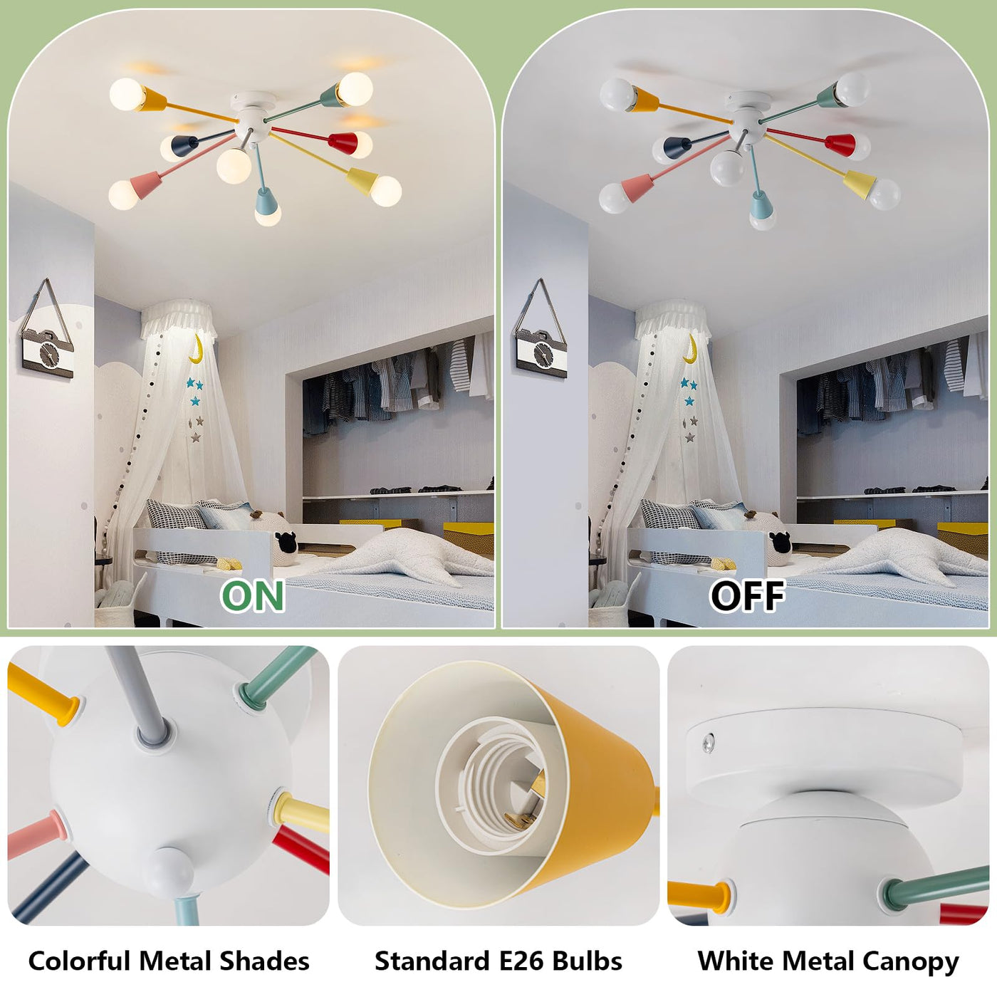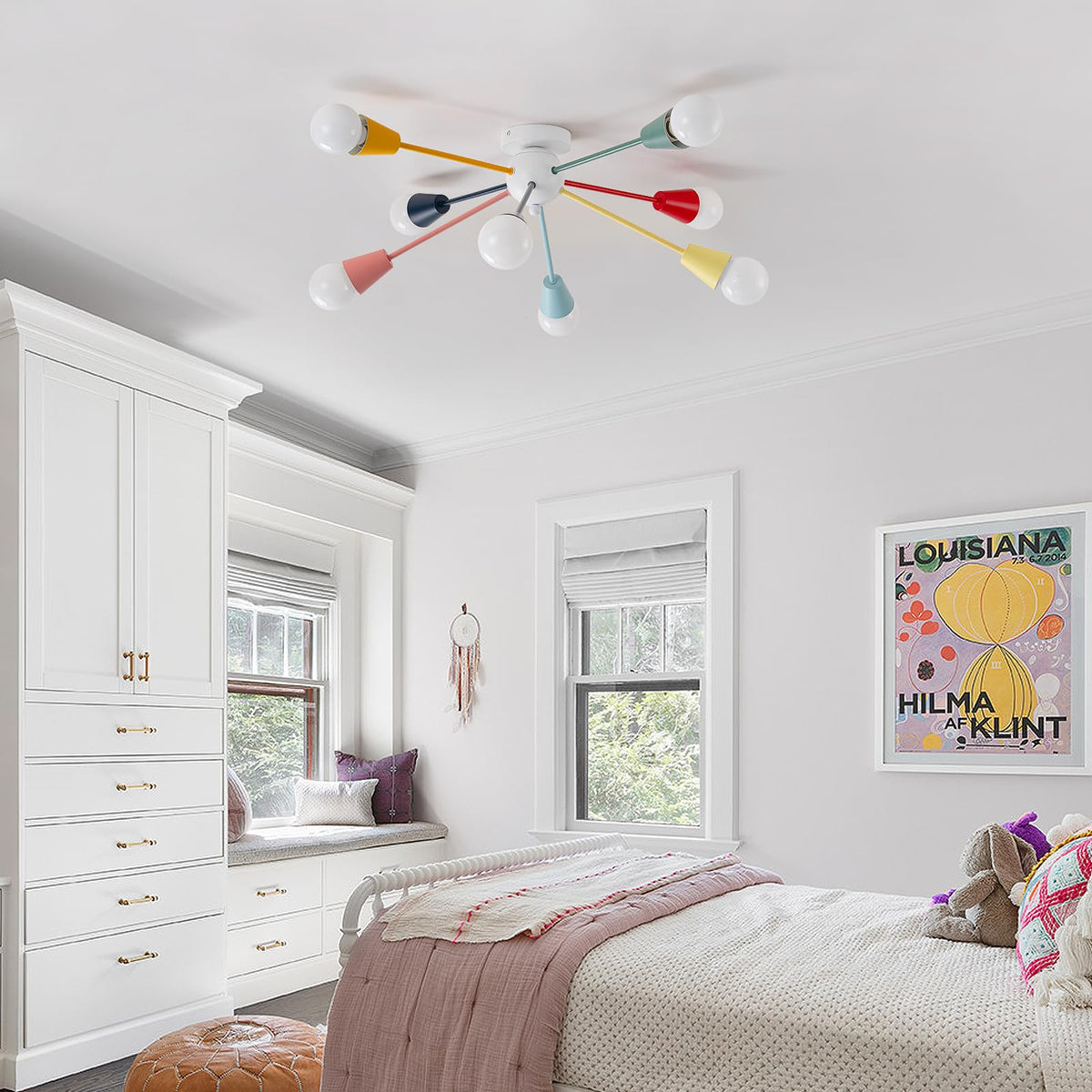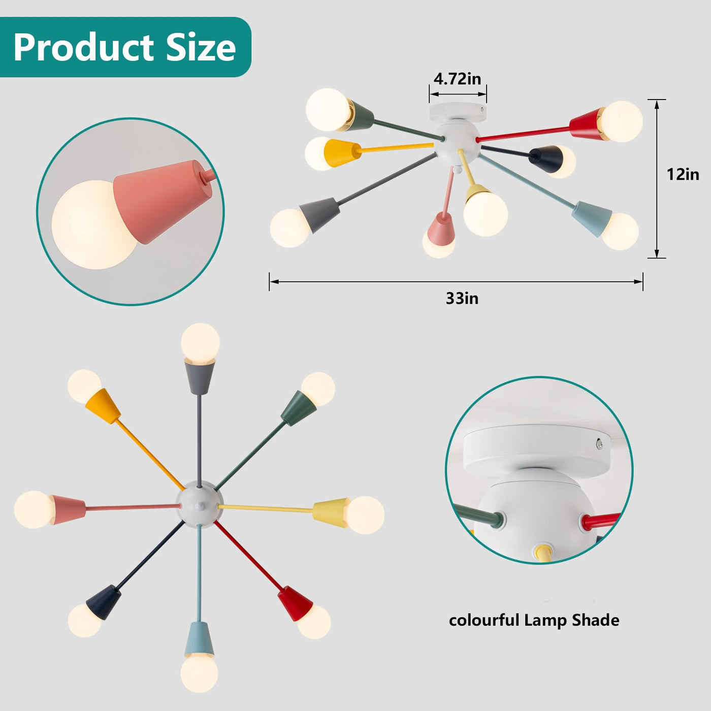 Ymlii Colorful Chandelier, 8-Light Modern Sputnik Chandelier, Kids Ceiling Light With Multi Color Rainbow Semi Flush Mount Ceili