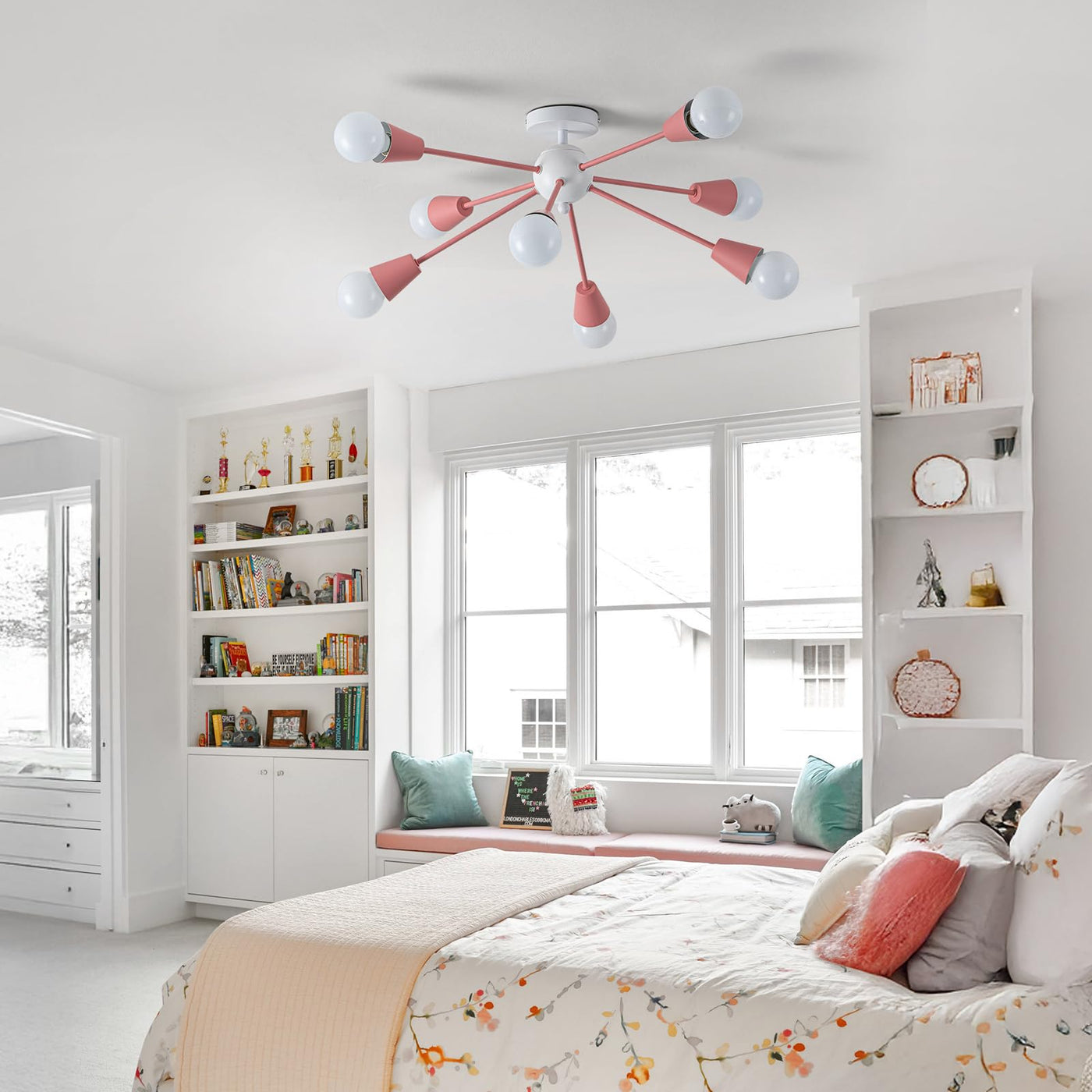 Ymlii Pink Sputnik Chandelier Ceiling Light Fixture, 8-Lights Modern Sputnik Lights Fixture With E26 Base, Semi Flush Mount Ceil