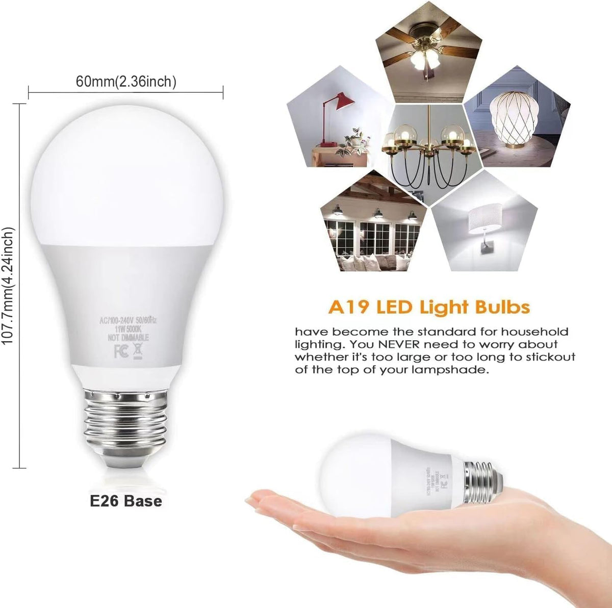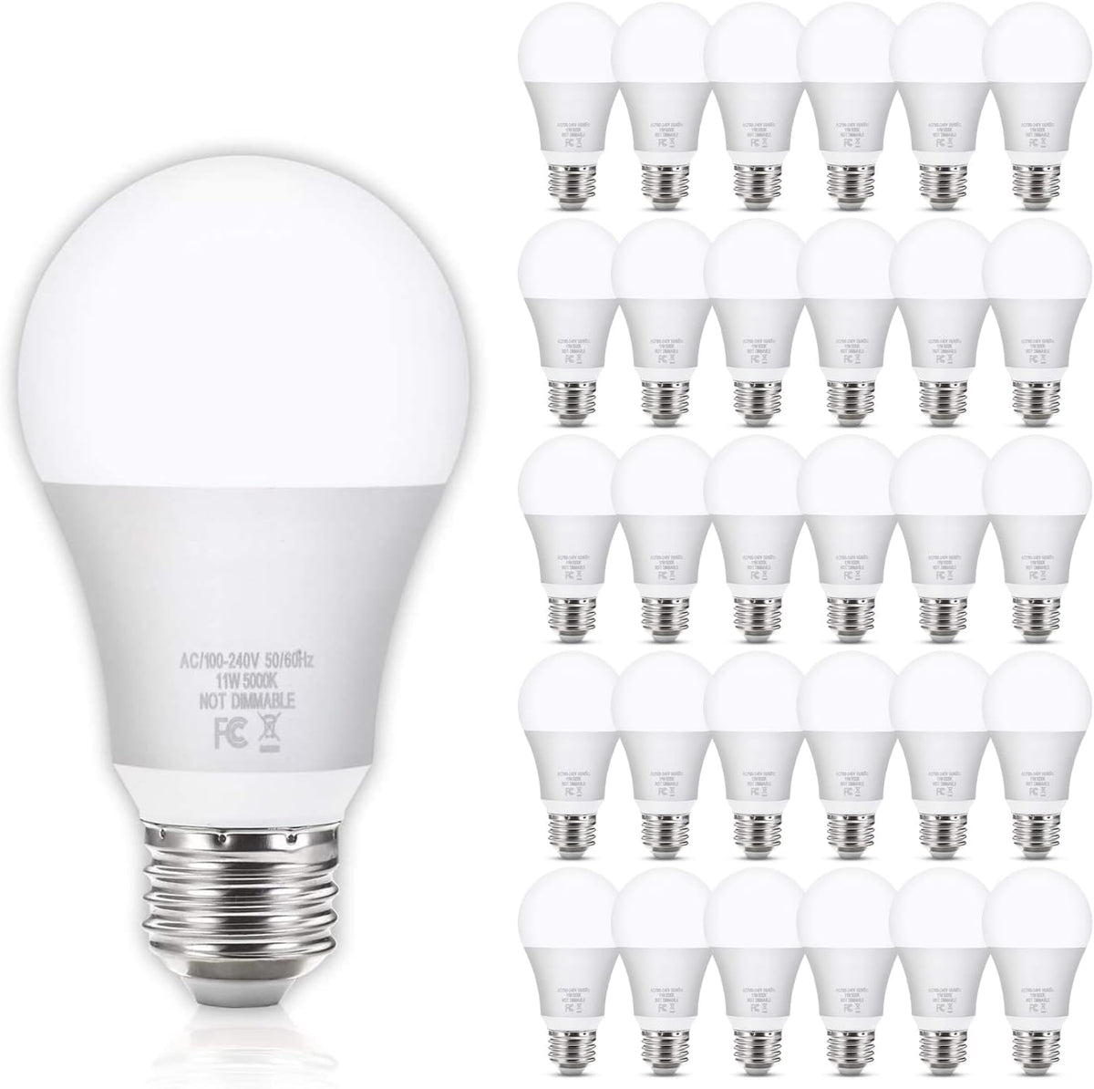 Yochoice A19 Led Light Bulbs, 100 Watt Equivalent Led Bulbs, Daylight White 5000K, 1100Lumens, E26 Base, Non-Dimmable, 11W Bright White Led Bulbs For Living Room Bedroom Home Office, 30-Pack
