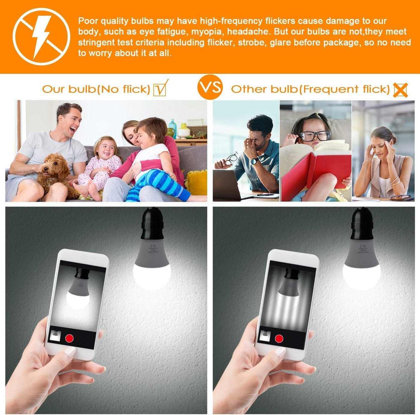 That’s your choice!! In order to make sure our customers get the best lighting and purchasing experience, we have compared with over 20 professional LED factories before produced, strengthen all the produce process, inspect one by one to guarantee all our A19 light bulbs could work very well – no flicker, no dazzle, super brightness, high CRI, well package.