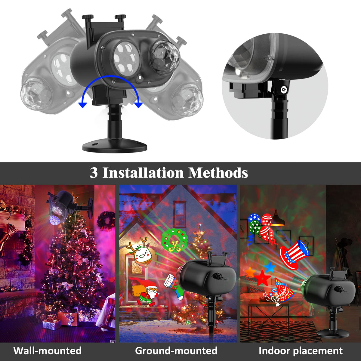 Yokgrass Halloween Christmas Projector Lights, 2-in-1 Outdoor Holiday Light Projector with 16 All Seasons Slides, 10 Colors, Wat