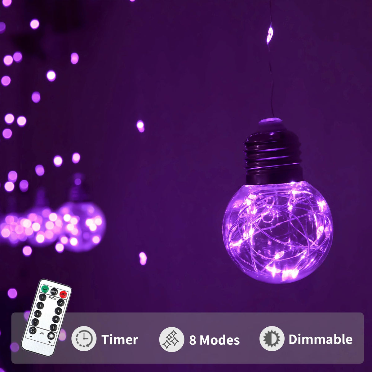 Yolight Wishing Ball Curtain Lights 200 Led Window Curtain String Lights With Remote, Usb Battery Powered Twinkle Globe Fairy Lights For Wedding Party Bedroom Halloween Christmas Decoration (Purple)