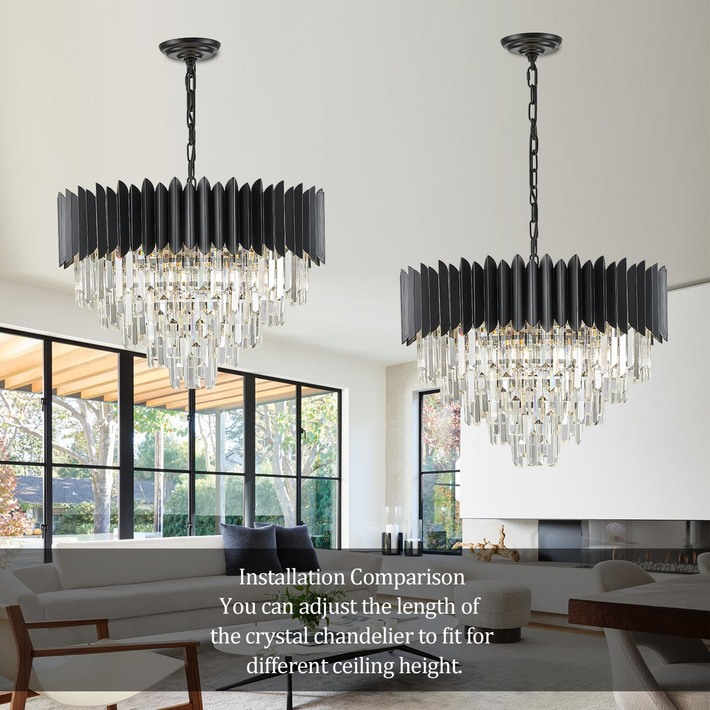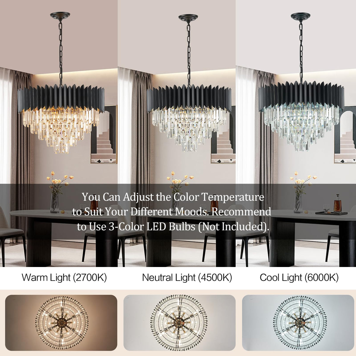 Black Crystal Chandelier 24'' K9 Crystal Round Pendant Lights Adjustable 5-Tier Large Modern Crystal Chandelier Light 10-Lights For Dining Room Living Room Kitchen Foyer Entryway