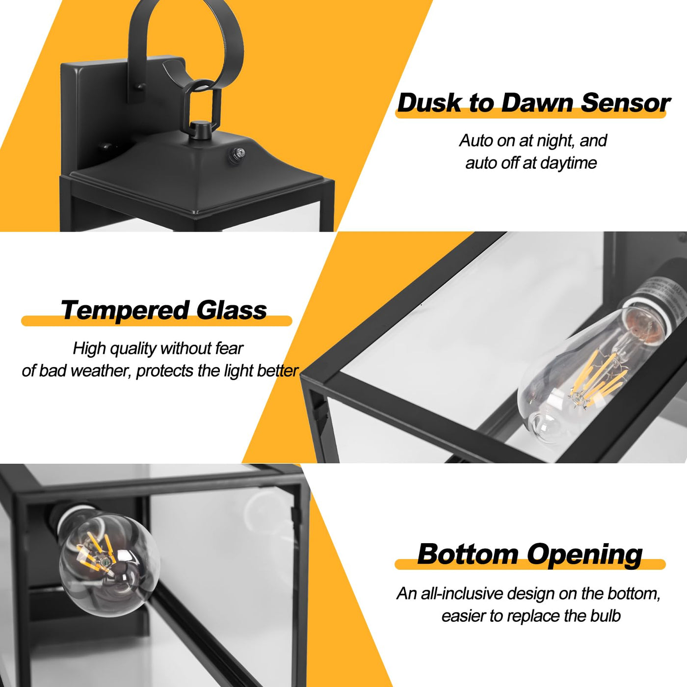 Yolsunes 19" Black Dusk To Dawn Outdoor Wall Lantern, Waterproof Modern Farmhouse Sconce