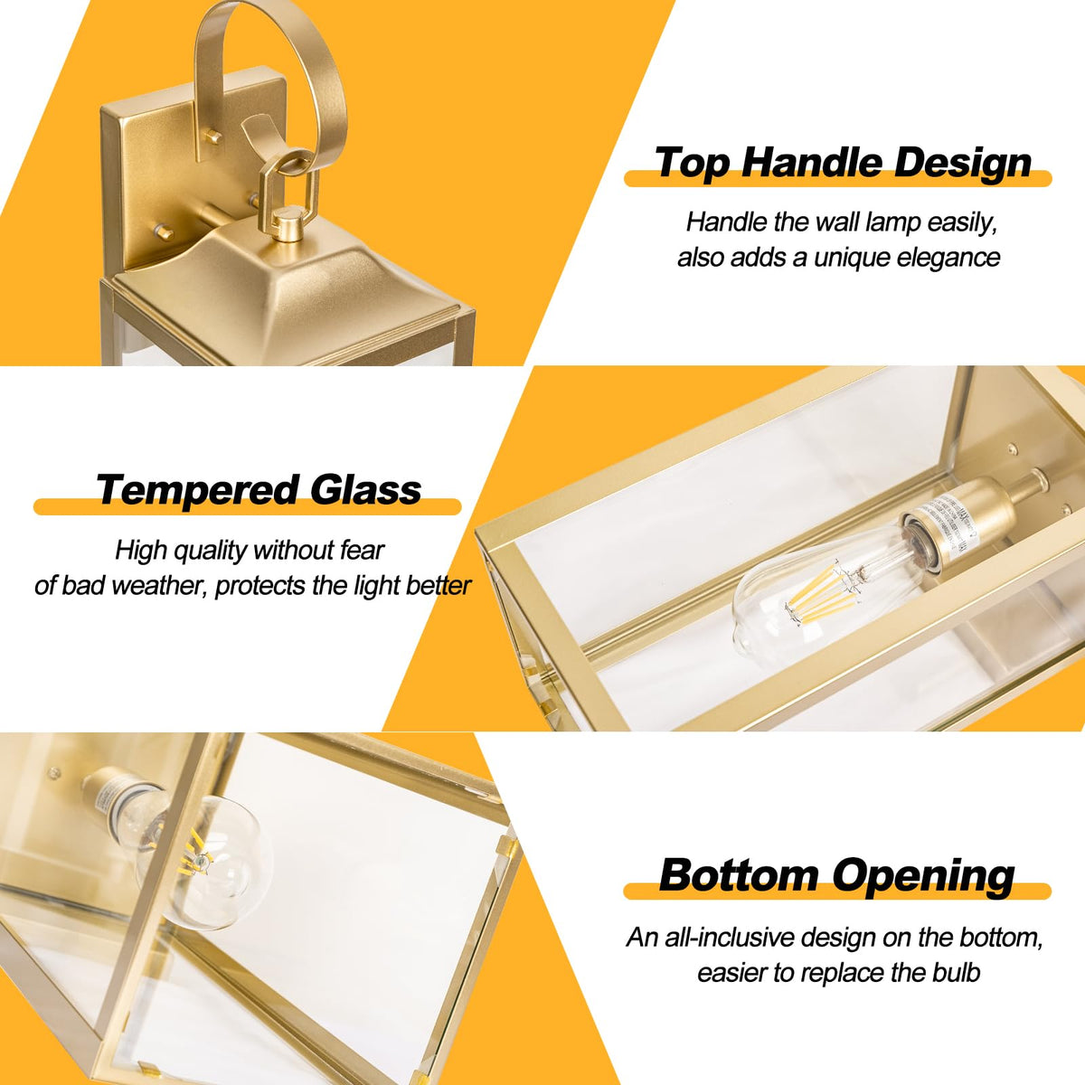 Q: What makes the Yolsunes Large Outdoor Wall Lantern weather-resistant?A: The Yolsunes Large Outdoor Wall Lantern is built with high-quality materials, including a robust metal frame and a thickened glass panel, ensuring it is impervious to rust, corrosion, and wear. It is expertly designed to withstand extreme weather conditions such as heavy rain, snow, and intense heat, making it a durable choice for outdoor lighting.