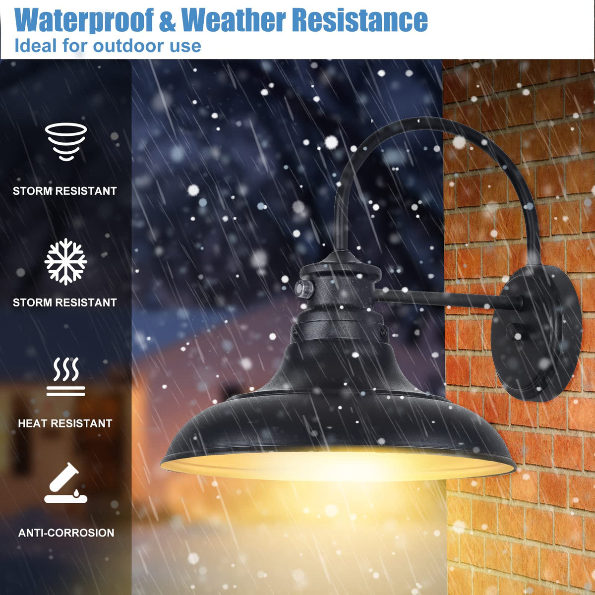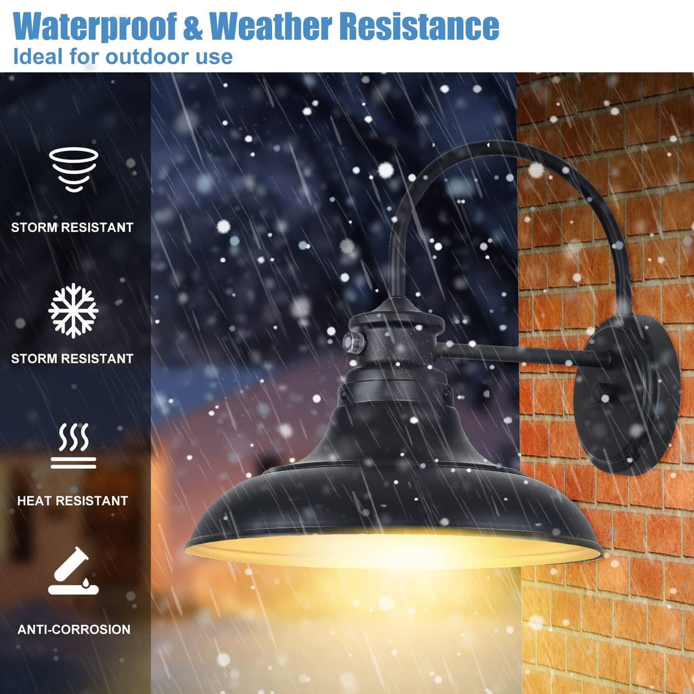 Yolsunes Dusk To Dawn Led Barn Lights - 2 Pack Gooseneck Black Exterior Wall Mount Fixtures