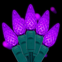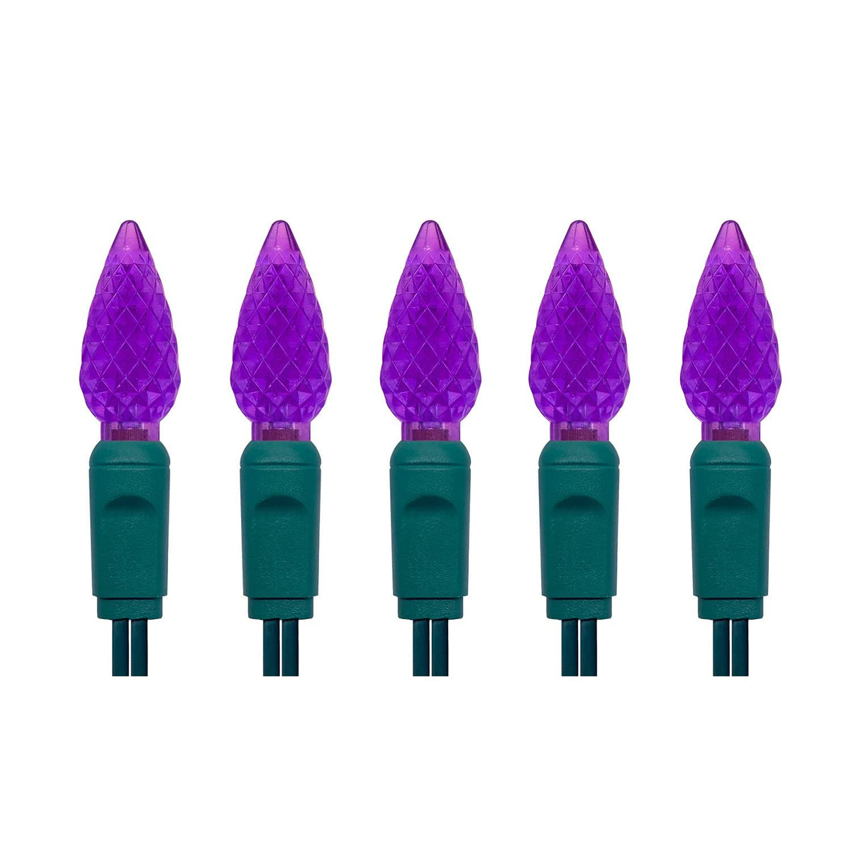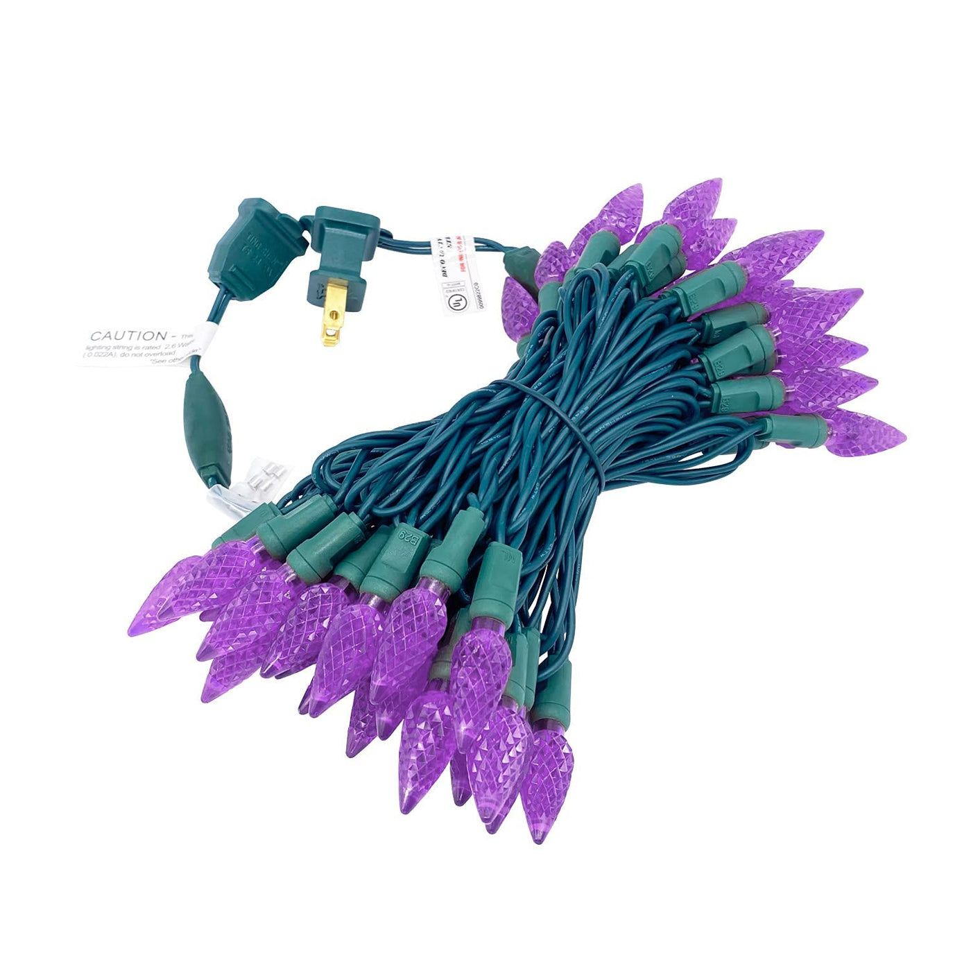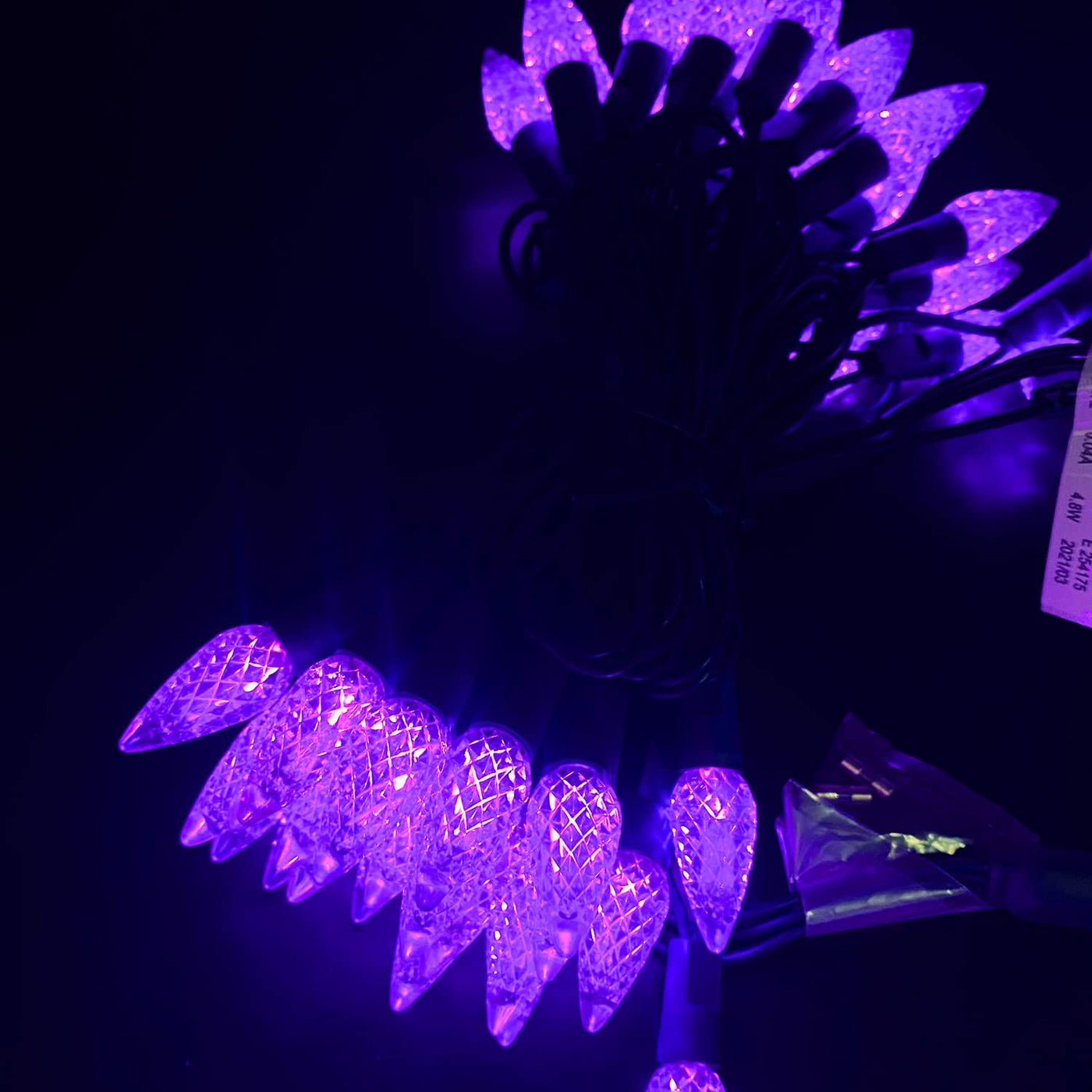 UL Listed 50 Count C6 Led Christmas Lights,Outdoor Led String Lights for Garden Patio Christmas Tree Decorations,17 Feet Green Wire(Purple Color) Grade: Premium LED bulb, Led light color: Purple Color Average Hours: 75,000 Full Wave, Steady (not twinkle), Non-removable Dimensions: 6'' lead, 4'' spacing, 6'' tail, 17' total length Power: 4.8 total watts, 0.096 watts per bulb, 120 volt, 45 max sets connected Plugs: Fused/stackable male plug, end-to-end connectors Usage: UL Listed for indoor and outdoor decoration Package Content: 1 Set X 50 count C6 led lights string with 2 fuses and Manual/polybag Perfect C6 purple led light strings. Well built with an American style male plug on one end and female plug on opposite end so you can connect multiple strings together end on end. Light construction is waterproof and durable,very sturdy and well made. This set has a nice Purple Color lights, great for the front porch.very bright.Wrapped the tree in the yard with them. Very nice and bright LED color lights! Love the lights, they light up all the lovely nights. Not only can you use them as Halloween/Christmas lights, you can also use for crafts and decorating. Excellent quality and low energy use but provides bright,even light.Lights are cool to the touch.Highly recommend. Strong demand is expected,so don't wait,order now!