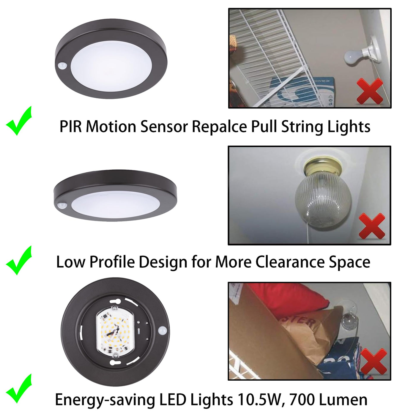 YoonLIT Flush Mount PIR Motion Sensor LED Ceiling Light, 10.5W, 700 Lumen, 6.2 Inch, Bronze Finish, Model YN-CL00450K