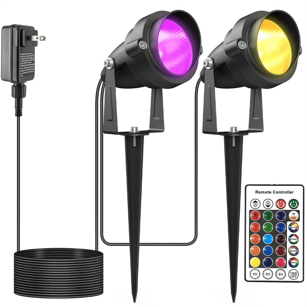 Yoosuml Colored Spotlights With Timer, Yard Spot Lights 10W Uplights, Outdoor Landscape Lights Rgbw Ip65 Waterproof Metal Case W