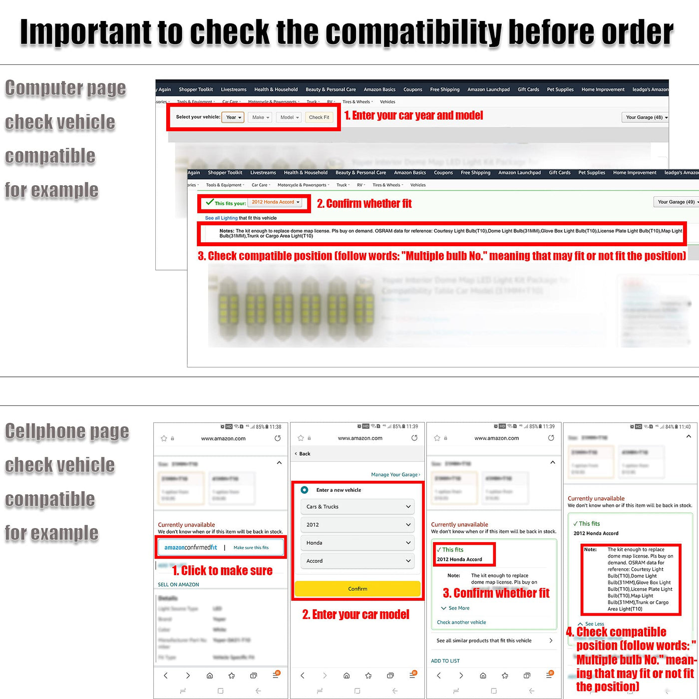 Yoper Led Bulbs Light Car Kit Set Ba9S T5 T10 28Mm 31Mm 36Mm 42Mm 44Mm Festoon Replacement For Interior Dome Map Trunk Door Courtesy Vanity License Plate White Package 57 Pieces