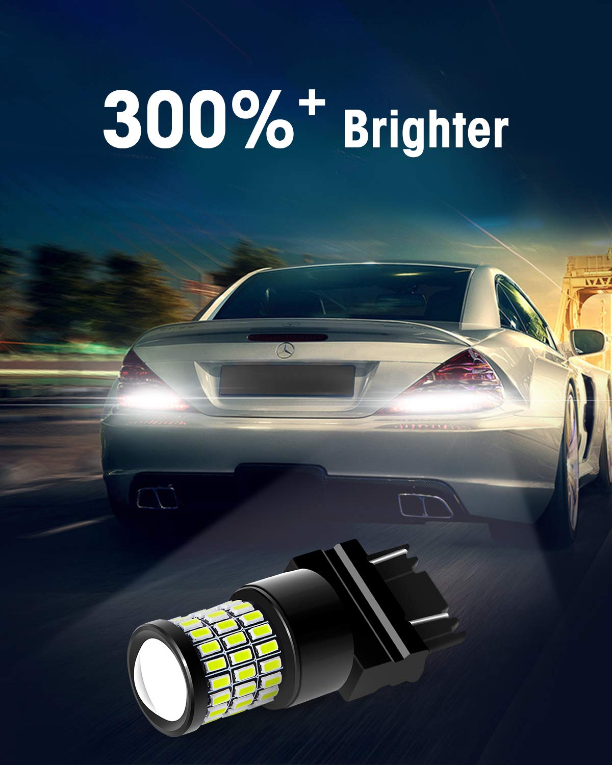 Yorkim 3157 Led Bulb White 3157 Led Reverse Lights Bulb with Projector 3156 3057 3056 4157 4057 T25 Led Bulbs replacement for Backup Reverse Light Brake Light Tail Light DRL, Pack of 4
