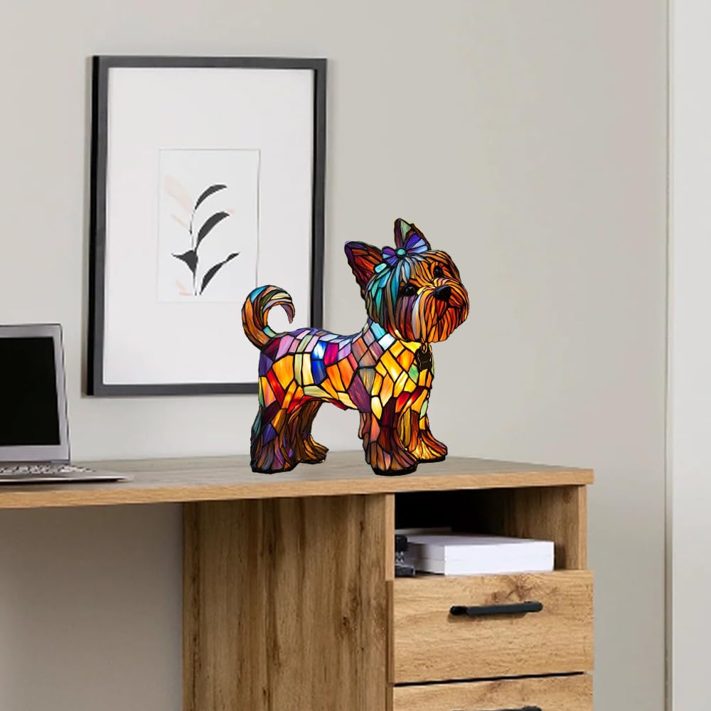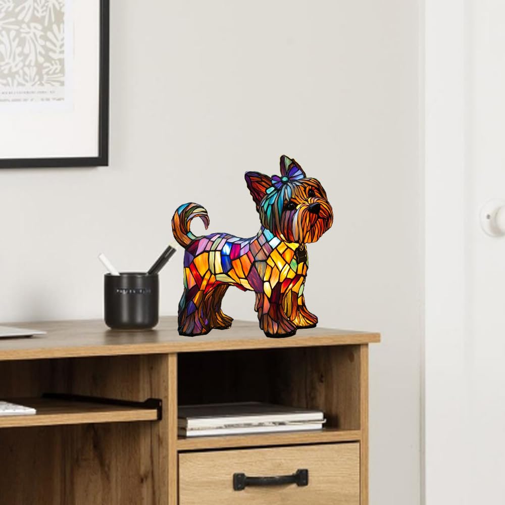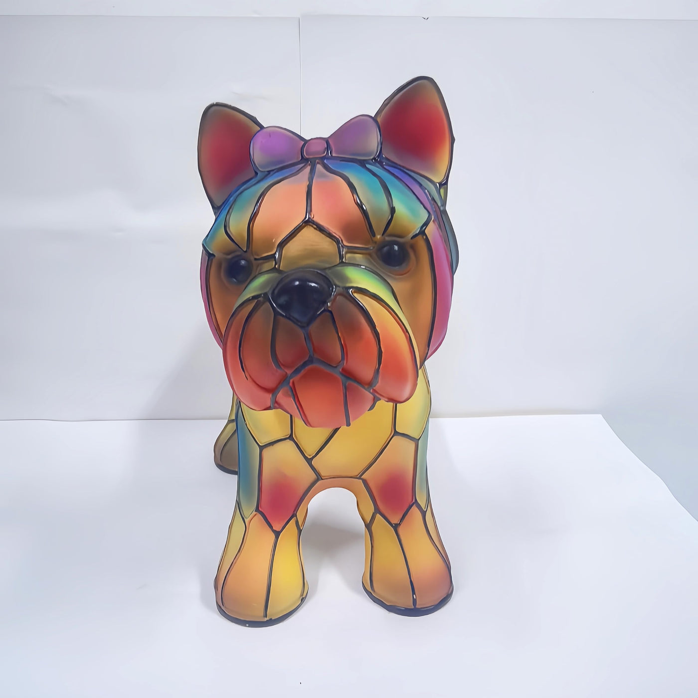 Yorkshire Terrier Dog Lamp, Stained Resin French Bulldog Tabletop Night Light, Cute Pet Dogs Themed Led Table Lamps, Vintage Nig
