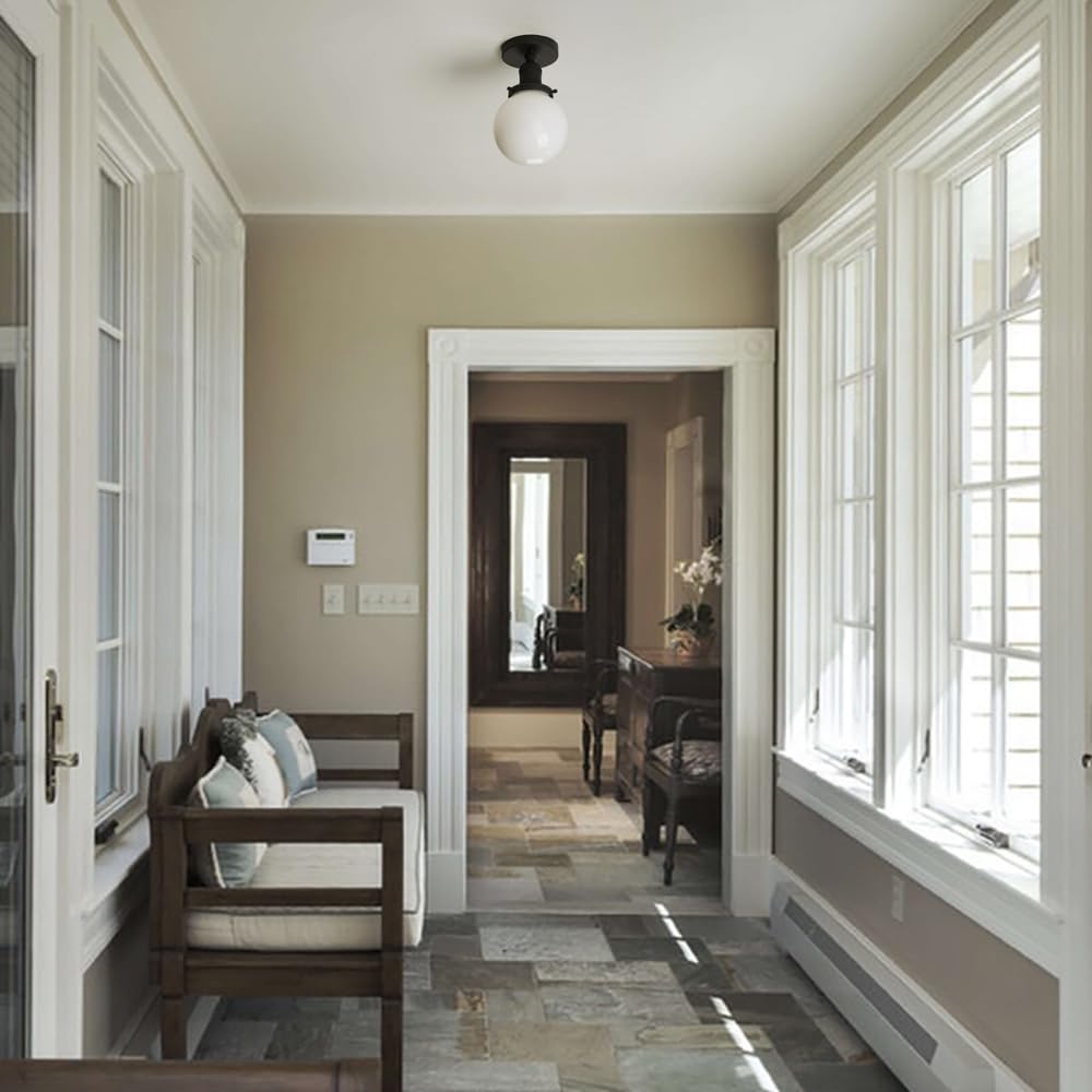 Q: What type of bulbs can I use with the Yosoan 1-Light Modern Hallway Ceiling Light?A: The Yosoan 1-Light Modern Hallway Ceiling Light is compatible with E26 medium base bulbs, including LED, compact fluorescent (CFL), halogen, and incandescent bulbs. Please note that the bulb is not included.