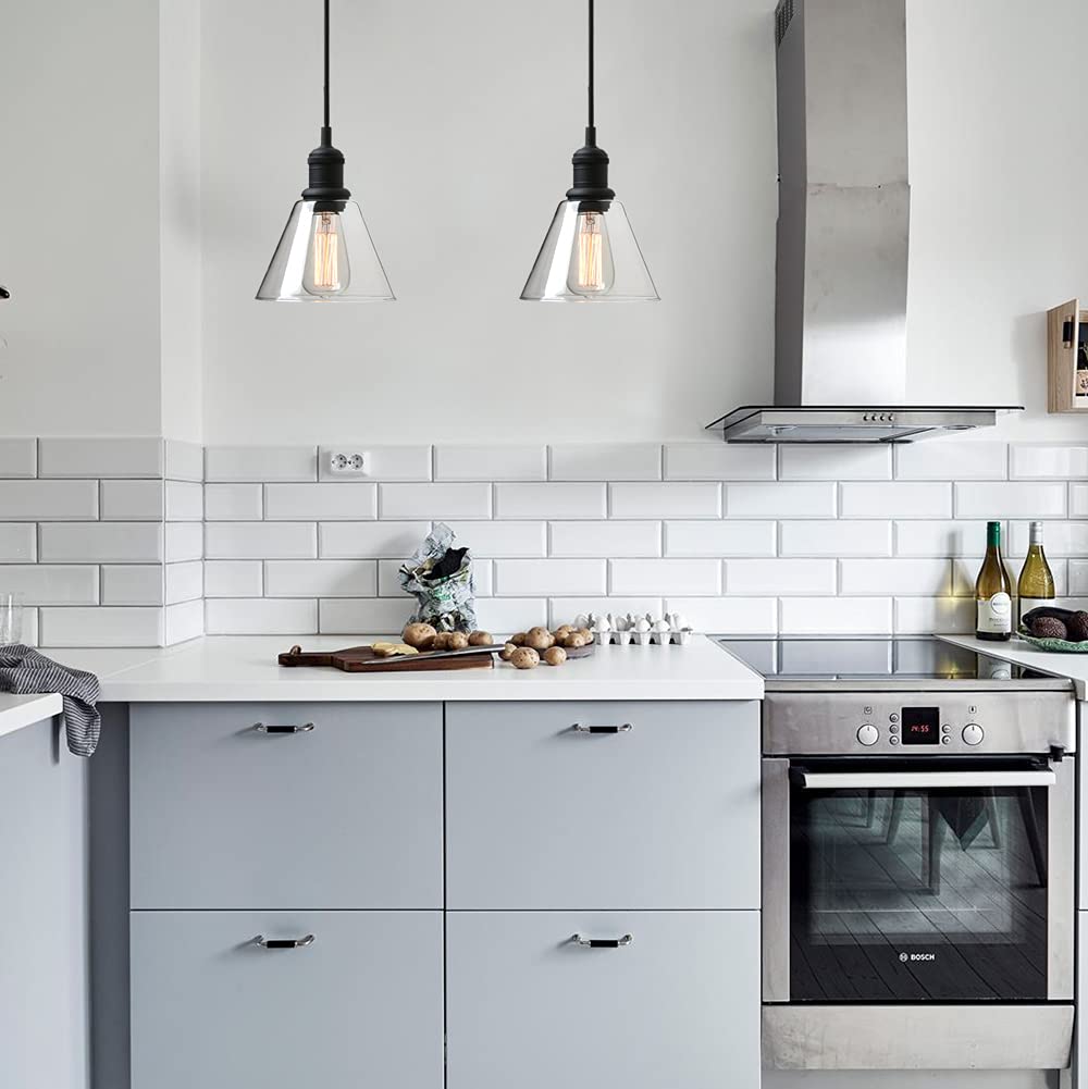 Q: What are the dimensions of the Yosoan Mini Kitchen Island Pendant?A: The Yosoan Mini Kitchen Island Pendant measures 7.3 inches wide and 9.1 inches high. It comes with an adjustable black round cord wire that can be extended up to 200 cm for flexible installation.