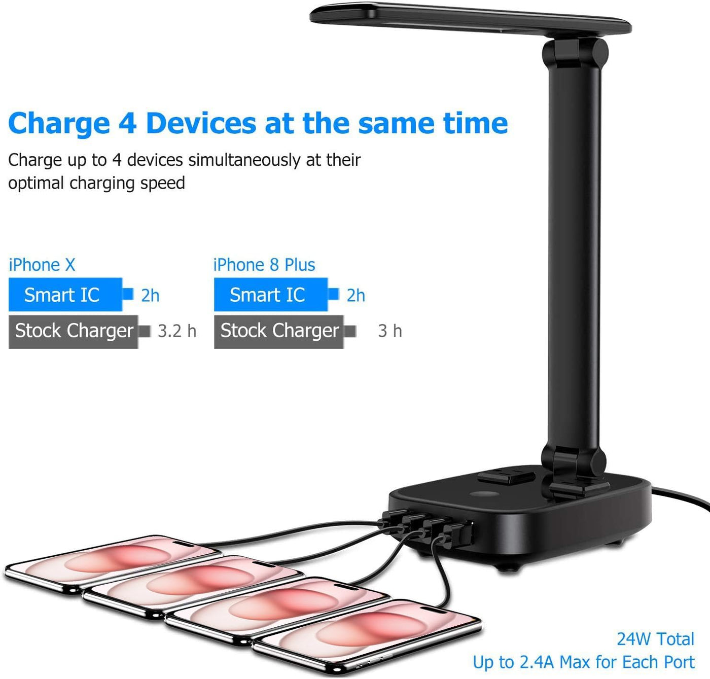 - **5Ft Long Power Extension Cord**: Equipped with an 18 AWG, 5-foot power cord, this lamp provides flexibility in placement and convenience in charging. The smart charging technology automatically detects your device to deliver optimal charging speeds, up to 2.4 amps per port.