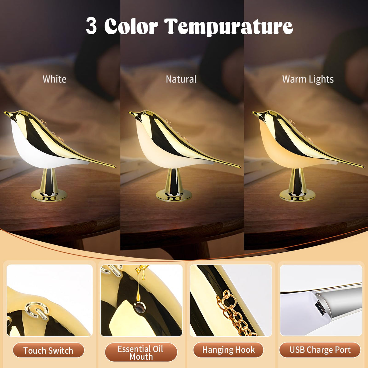 Yotozu Small Bird Touch Lamp, Dimmable And Cordless Bird Night Light, Usb Rechargeable Touch Sensor Control Table And Desk Lamp With Aroma Diffuser Function For Bedroom (Gold)