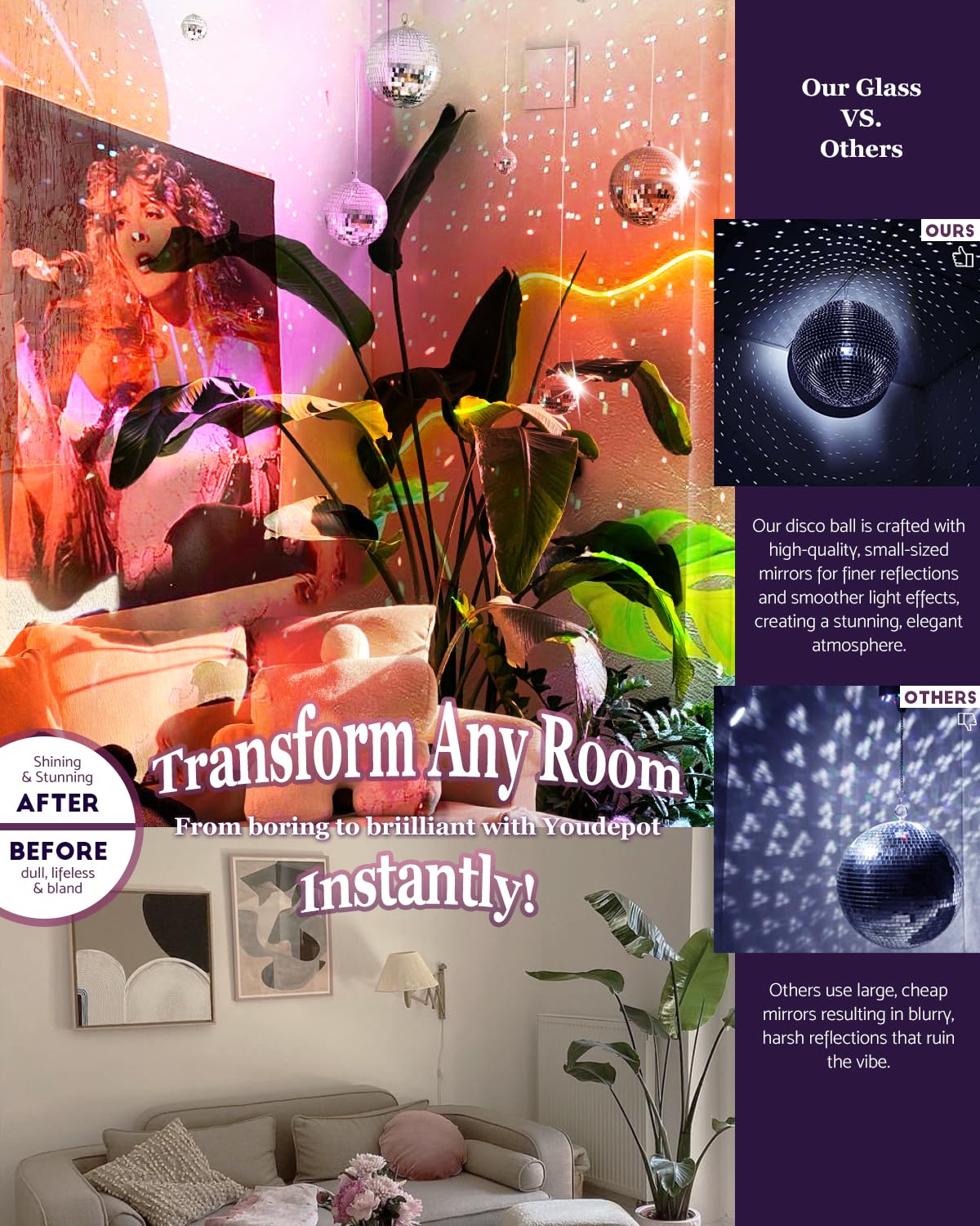 This disco balls set is perfect for party planners, DIY enthusiasts, and anyone looking to elevate their event decor. Whether youre creating an enchanting atmosphere for a wedding, spicing up a birthday party, or adding flair to your holiday celebrations, the Youdepot disco balls are a versatile choice that brings joy and shimmer to every gathering.