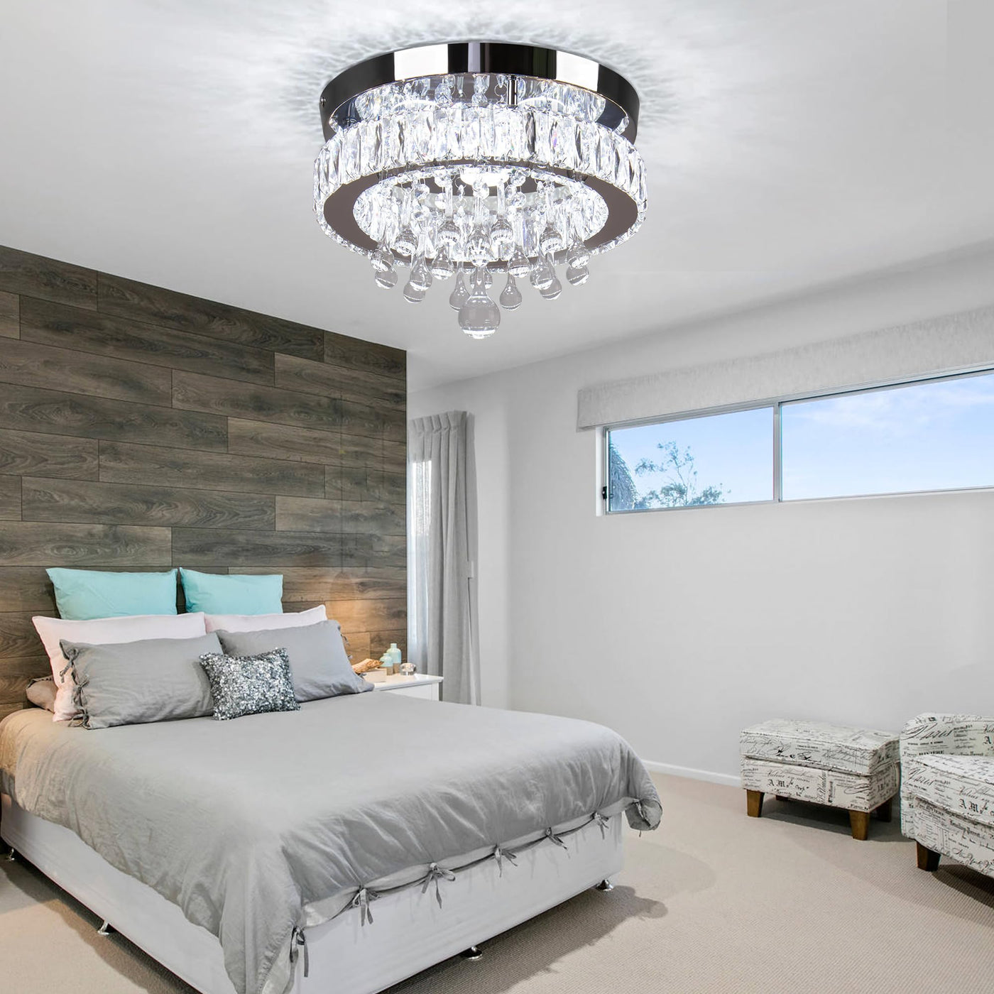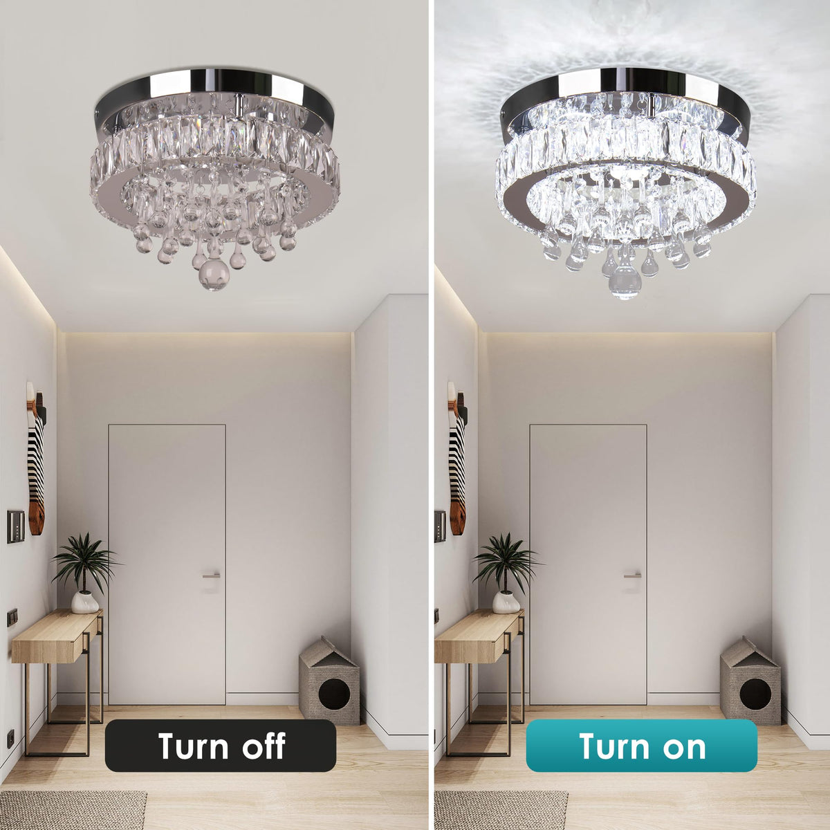 11.8'' Modern Chandelier Crystal Ceiling Light Led Chandeliers Light Fixture For Bedrooms Dinning Room Living Room Lights 6500K Cool White This Led Chandelier Light Fixture Non-Dimmable, It Can Control By Normal Switch Bulb Included, Led Chip. Ideal Lighting Decoration For Hall, Living Room, Bedroom,Restaurant, Cafe, Corridor, Closet,Theme Party. Suggested Room Size: 8-15M^2 Ceiling Mount Material: Crystal & Stainless Steel Power: 25W, 85-265V Voltage: 85-265V Light Color:Cool White(4500-6000K) Frame Color: Chrome Package Includes: 1 *Crystal Ceiling Light (Bulb Included),1 X Instruction