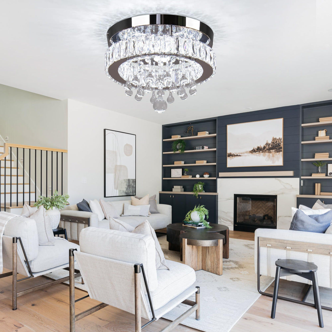 Ypqxyhda 11.8'' Crystal Chandeliers Flush Mount Chandelier Ceiling Light Fixture Modern Crystal Ceiling Light For Bedroom Living