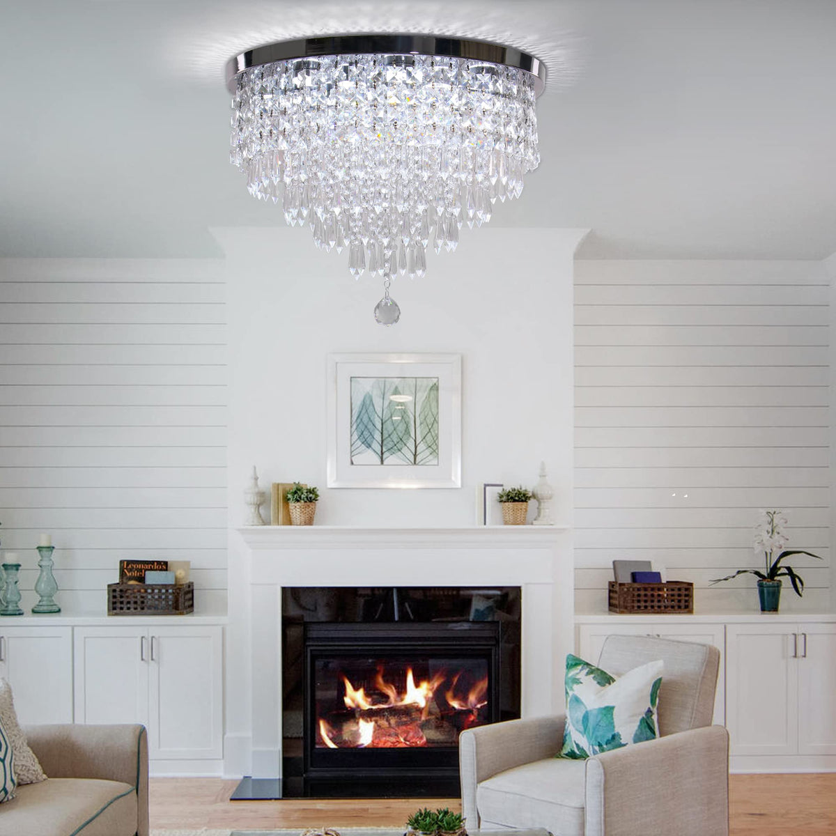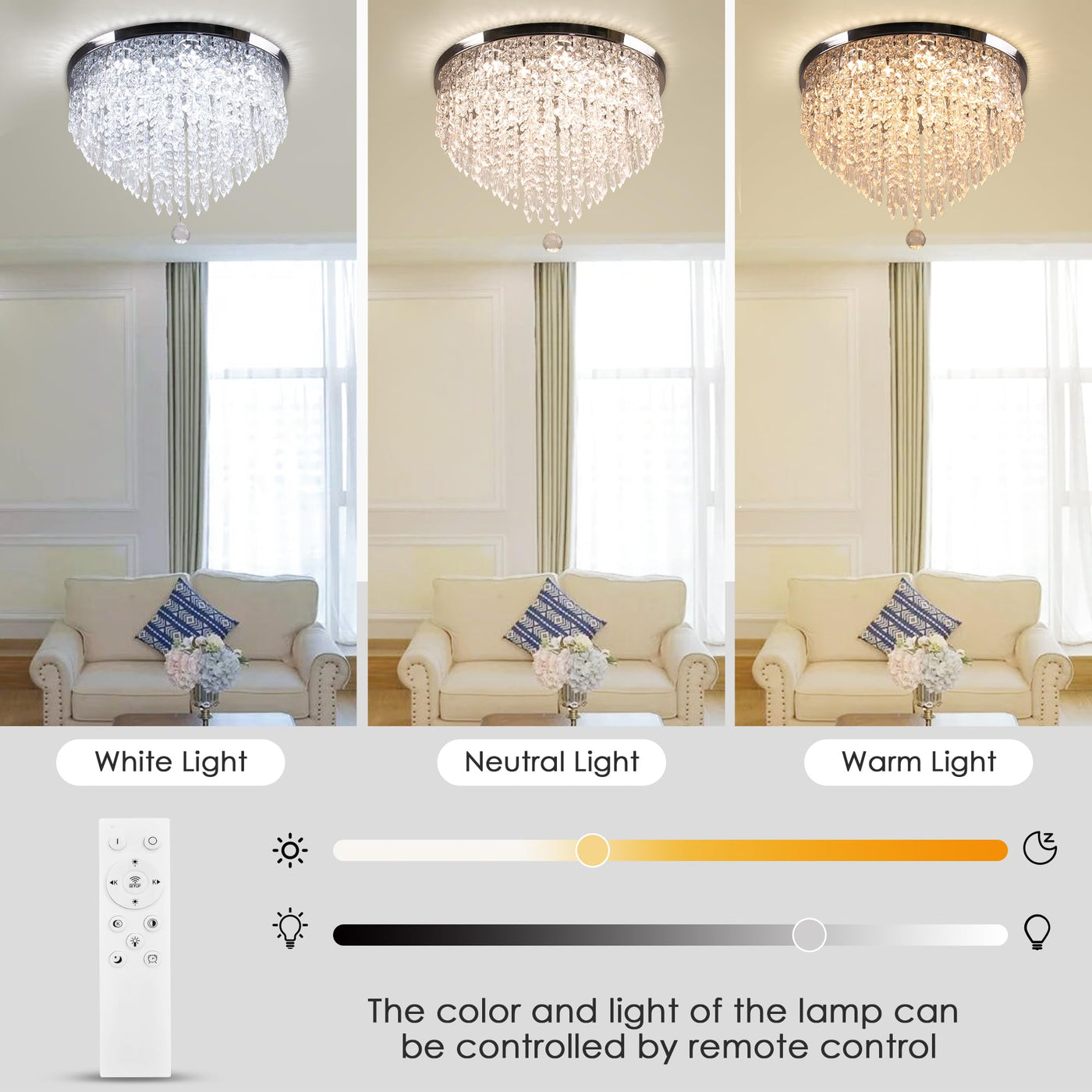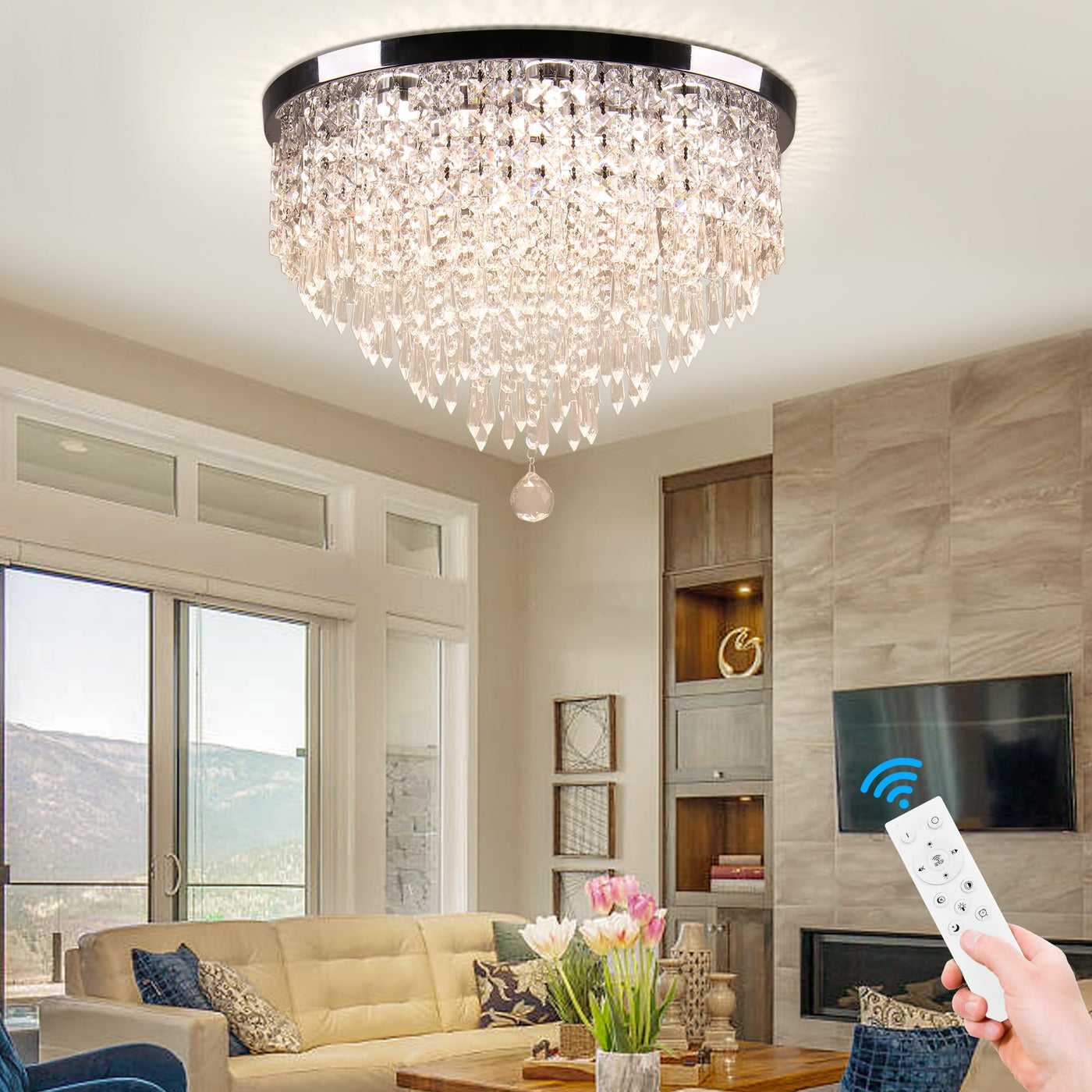 Ypqxyhda 19.7'' Crystal Chandeliers Led Crystal Ceiling Light With Remote Control Modern Flush Mount Chandelier For Bedroom Livi