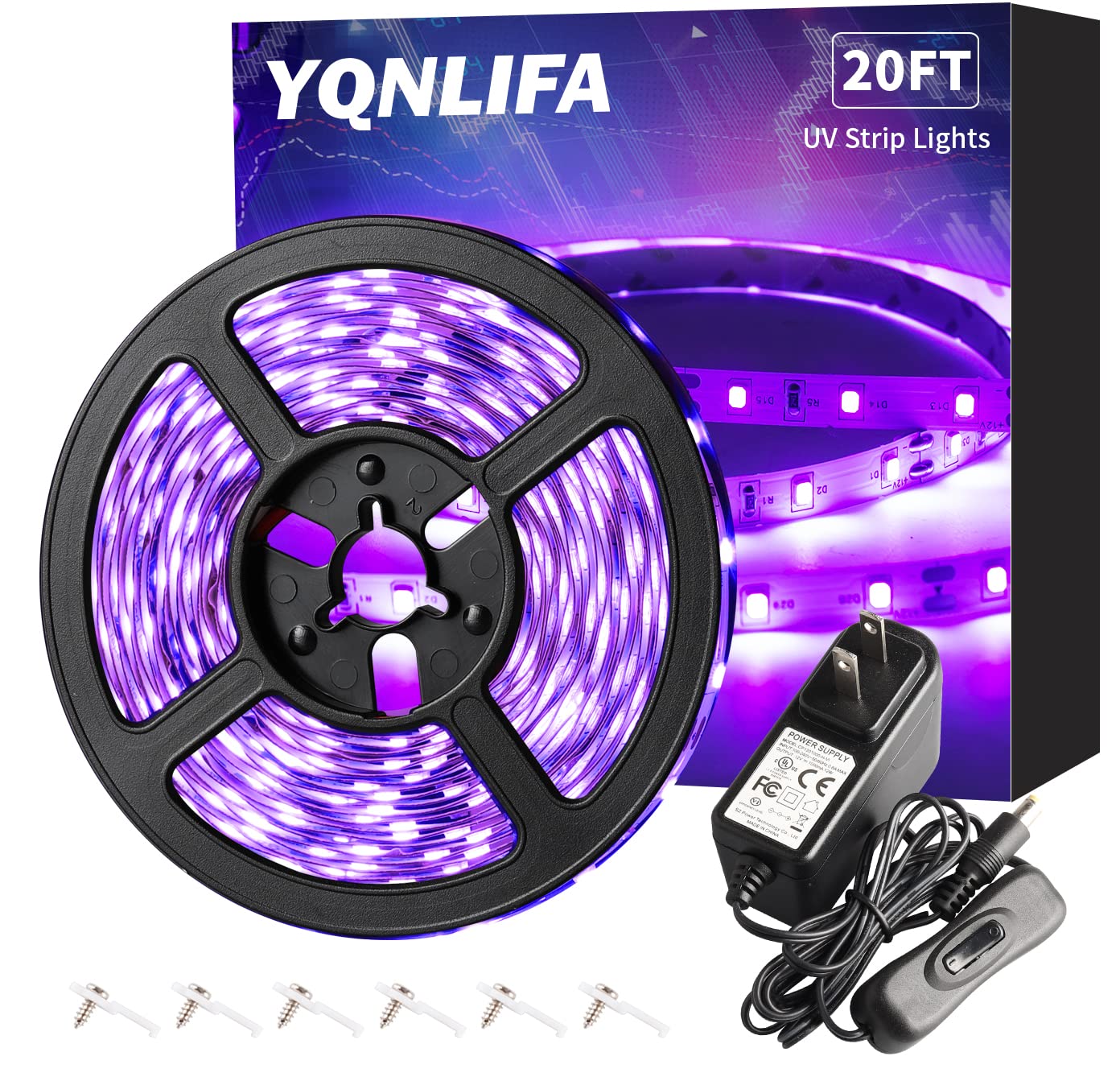 Yqnlifa 20Ft Black Light Strip, 360 Lamp Beads, Flexible Led Blacklight Kit, 12V Blacklight Strips, Non-Waterproof For Indoor Decoration,Fluorescent Poster, Glow Party, Birthday, Wedding, Halloween