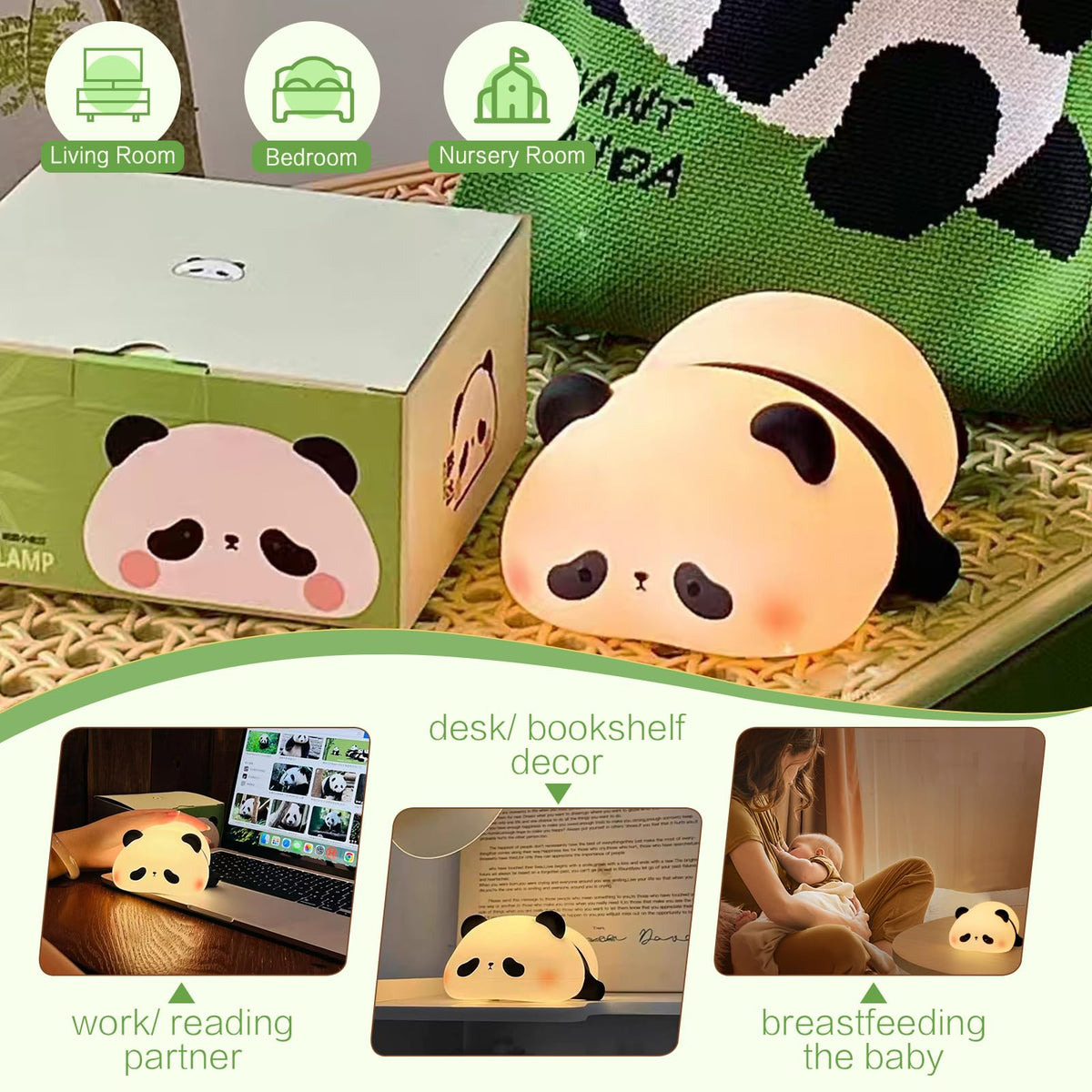Yr Yrhh-Pet Panda Cute Night Light Led Panda Lamp Dimmable Novelty Animal Light Food Grade Silicone Squishy Nightlight Light Up Desk Decor For Bedroom College Dorm Boys Girls Cute Pandas Gifts