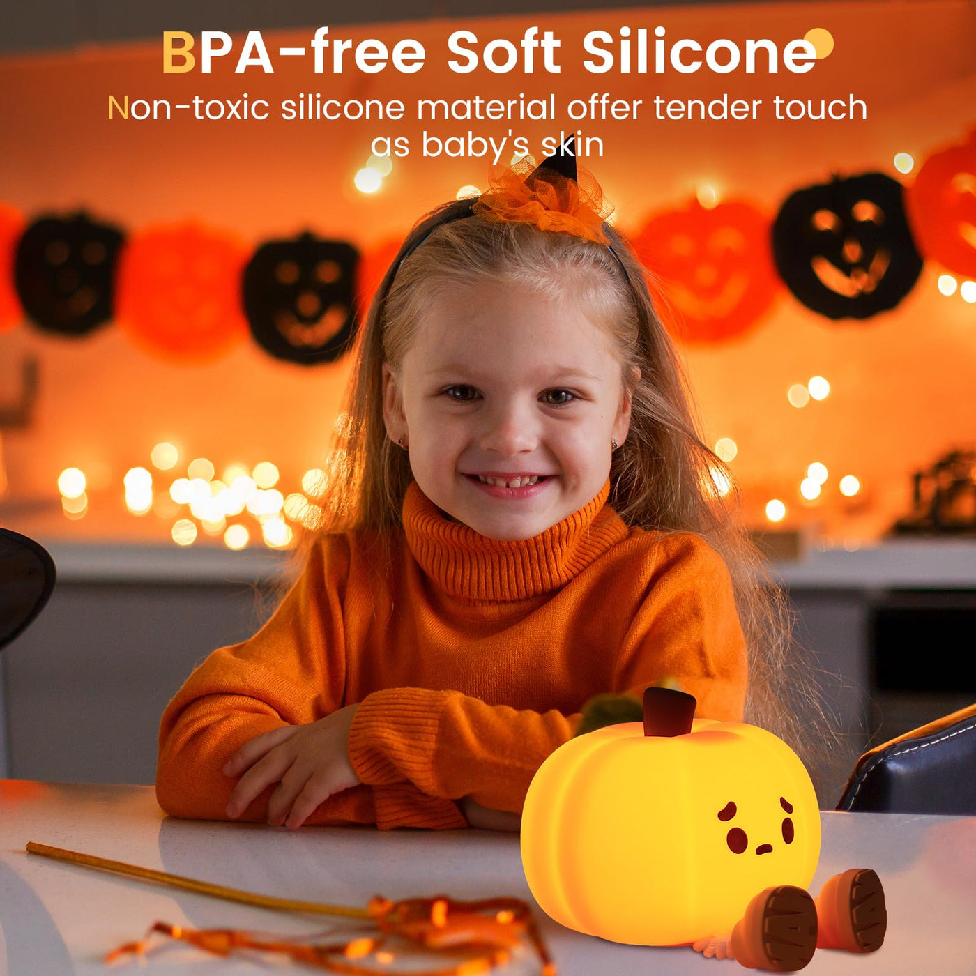 YR YRHH-PET Sad Pumpkin Night Light, Cute Halloween Decor, Led Squishy Pumpkin Light with Feet, Dimmable Light Up Pumpkin For Ki