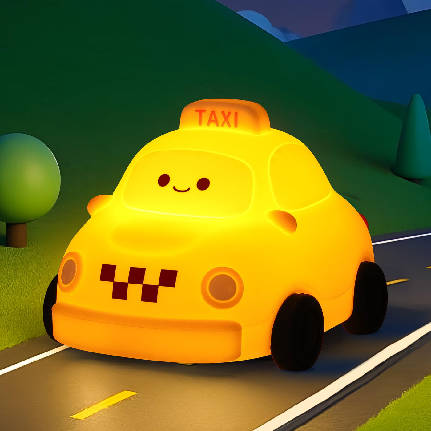 YuanDian Car Night Light, Gifts for Adults Teens and Babies. Decorate Kids Bedroom with Cute Silicone Taxi Toy Nightlights, Chr
