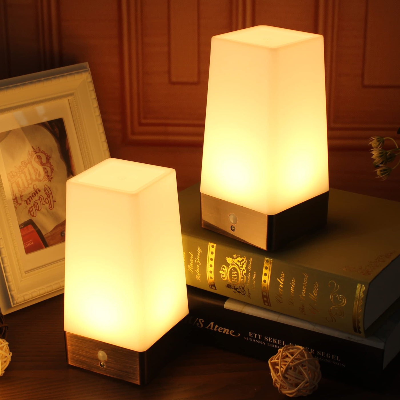 Yucanucax 2Pack Square Retro Led Night Light,Bedside Lamp With Wireless Pir Led Motion Sensor Night Light, Battery Powered Light For Living,Bedroom,Bathroom,Hallway,Kitchen