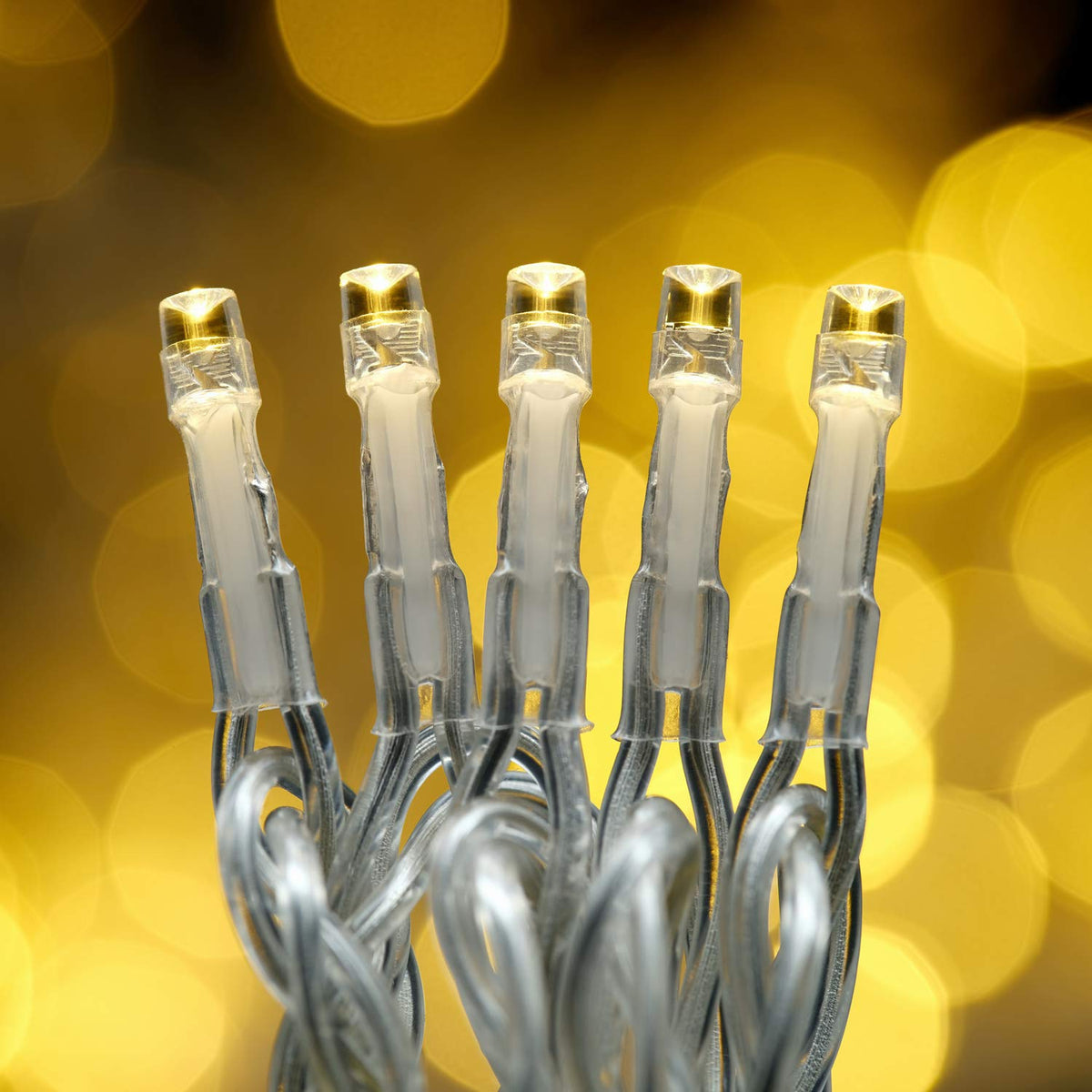 100 Feet 300 Count Warm White LED String Lights with 8 Models Adapter, 4" Spacing Plug-in Clear Wire Wide Angle 5mm Christmas Lights (Warm White - Multimode)
