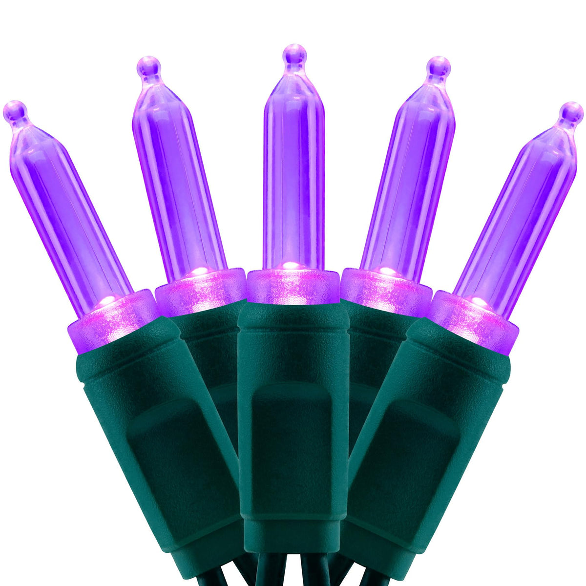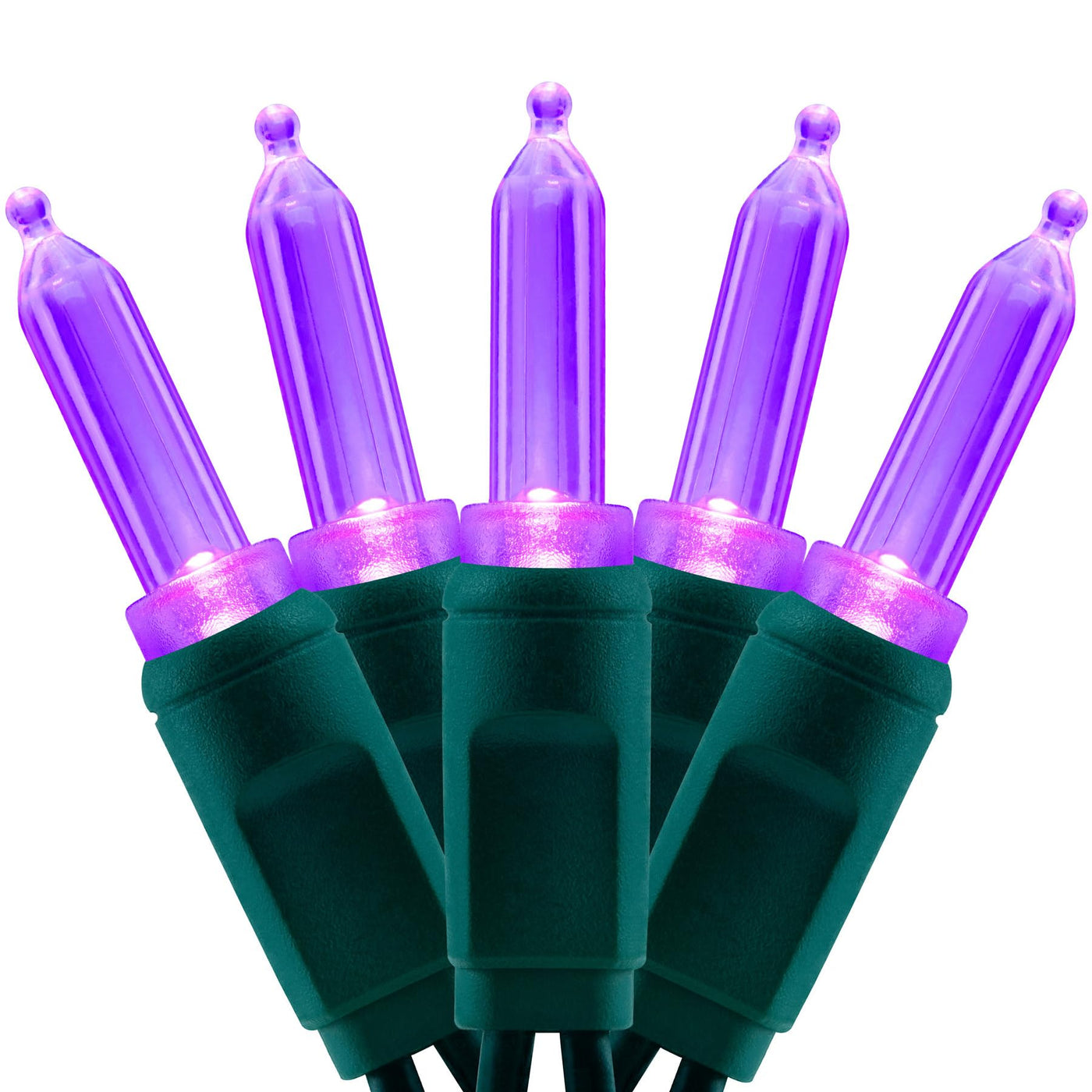 100 count purple T5 traditional style LED bulbs on a robust green wire.