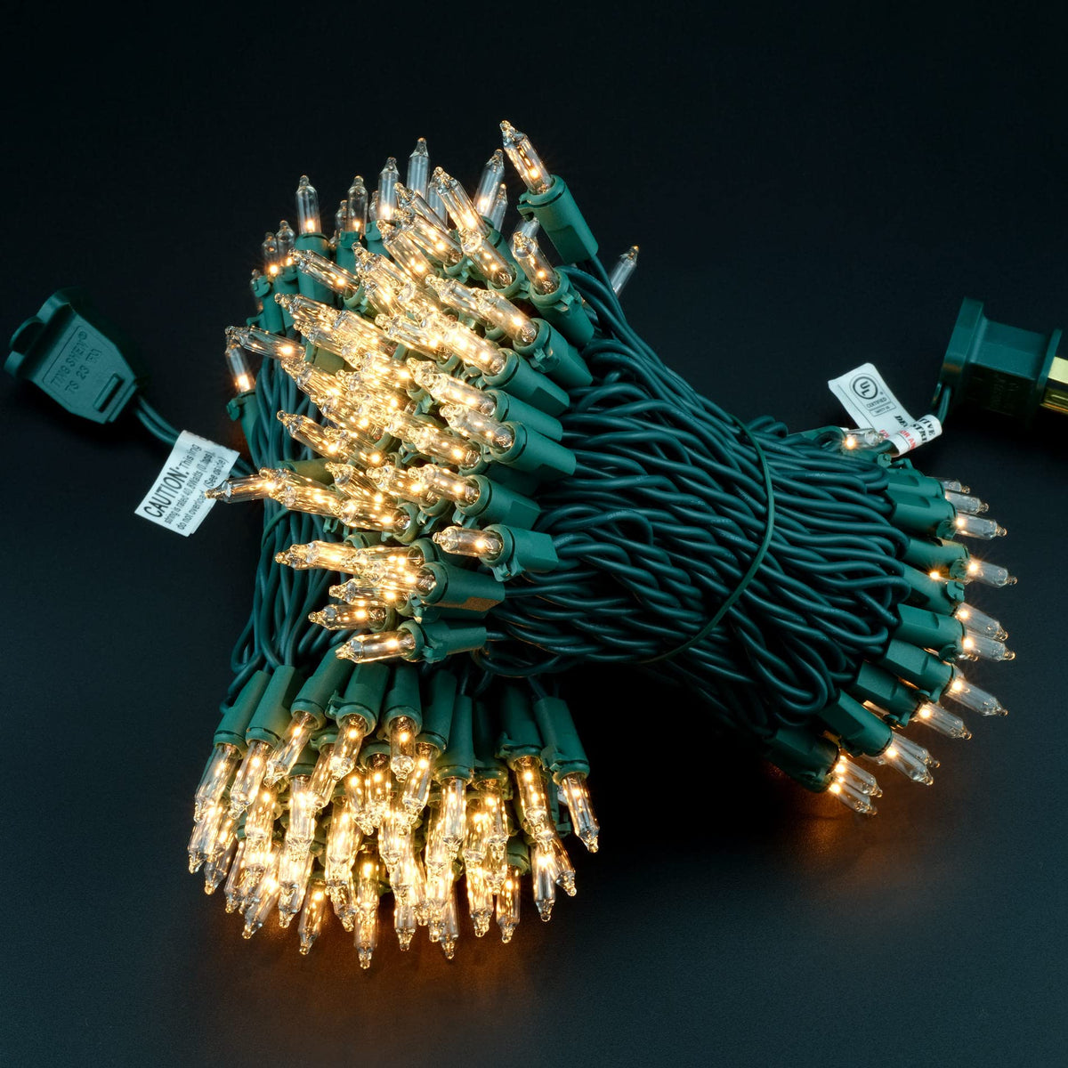 Yuletime 200 Clear Christmas Lights, Pack Of 2 Sets 33 Feet 100 Count Ul Certified Incandescent String Lights (Clear - Green Wire)