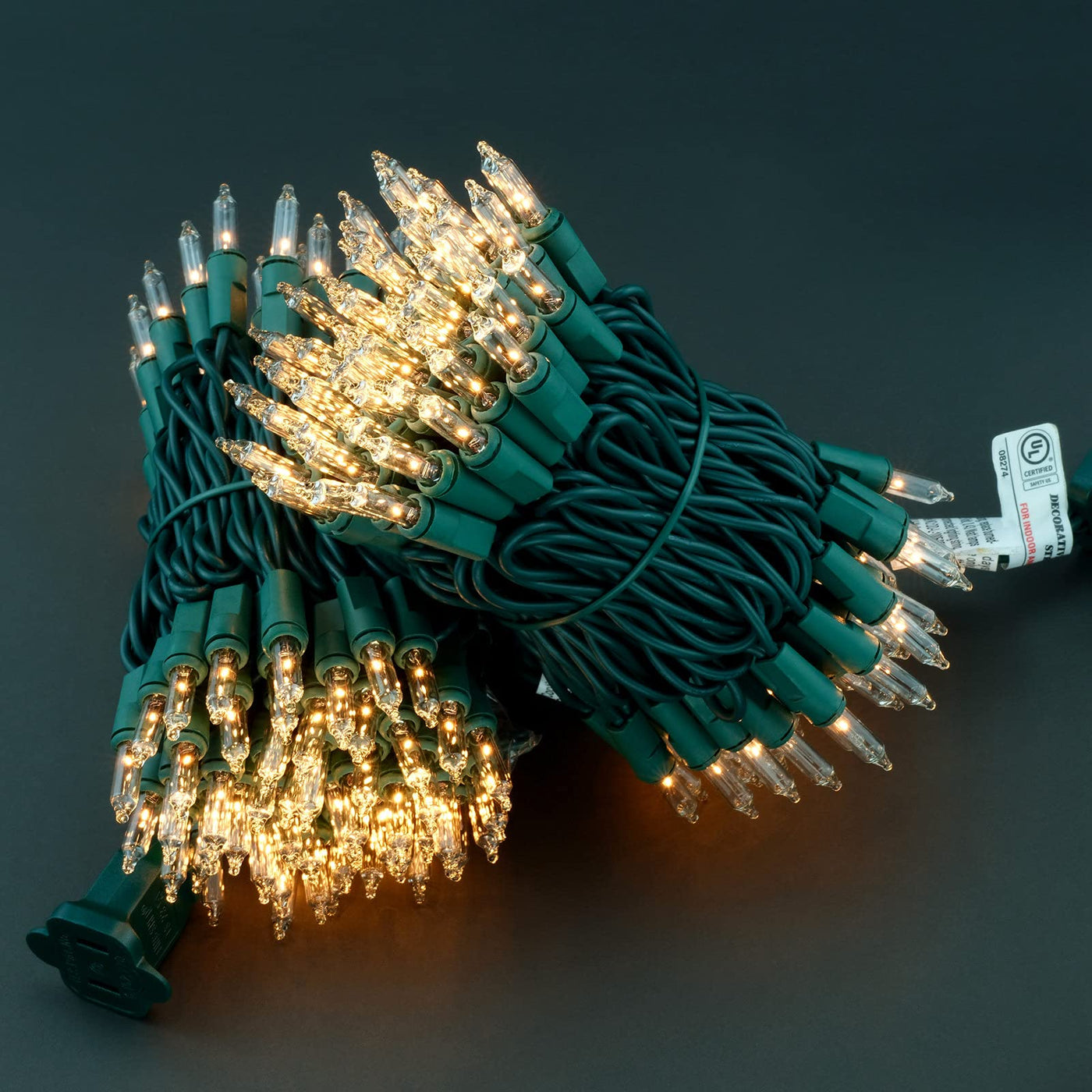 Yuletime 200 Clear Christmas Lights With Green Wire, Pack Of 2 Strands Of 21 Ft 100 Count Ul Certified Incandescent Mini String