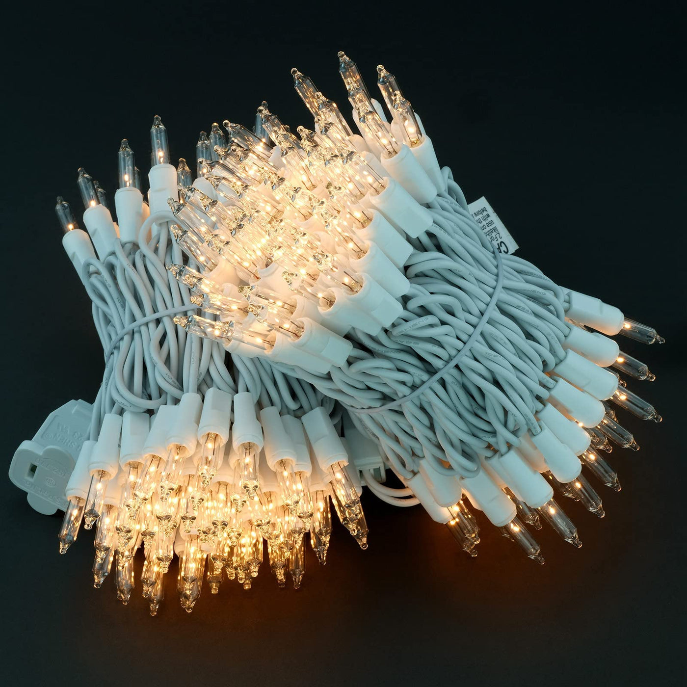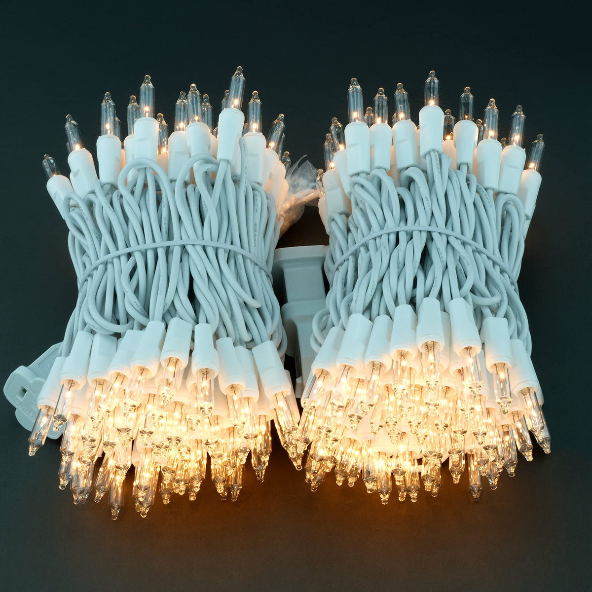 Yuletime 200 Clear Christmas Lights With White Wire, Pack Of 2 Strands Of 21 Ft 100 Count Ul Certified Incandescent Mini String