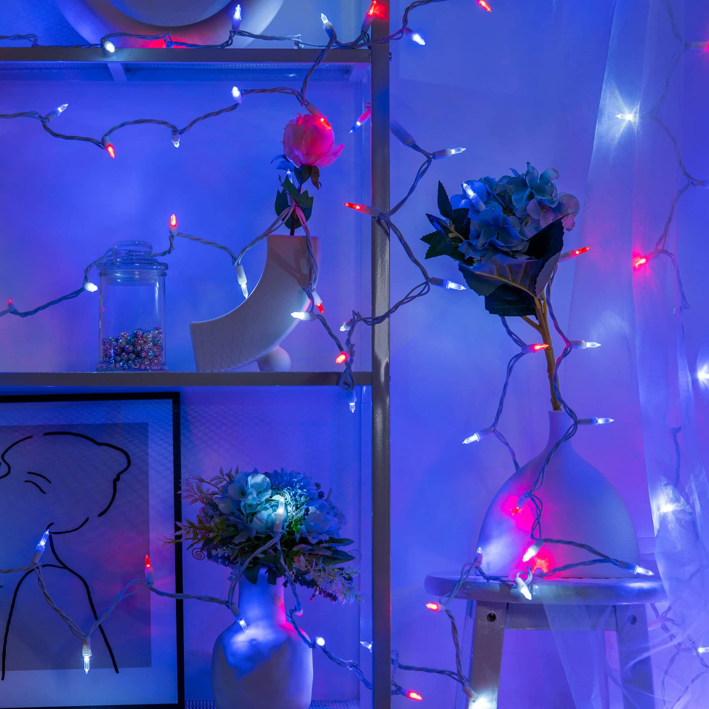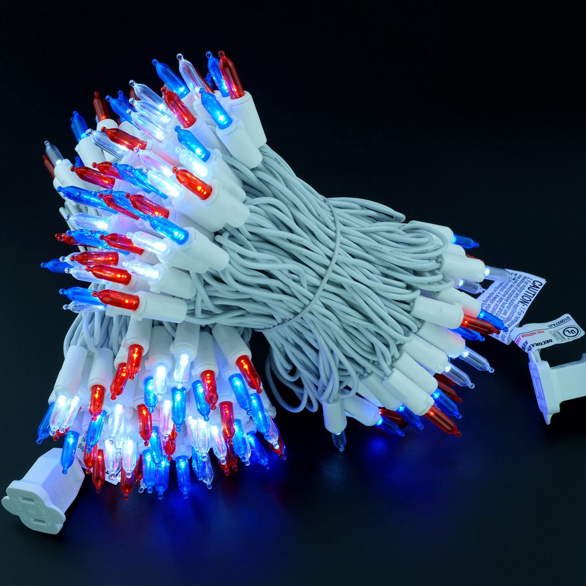 Yuletime 200 Count Red White Blue Led Christmas Lights, 66 Feet White Wire Ul Certified Commercial Grade Holiday String Light Set (Red White & Blue)