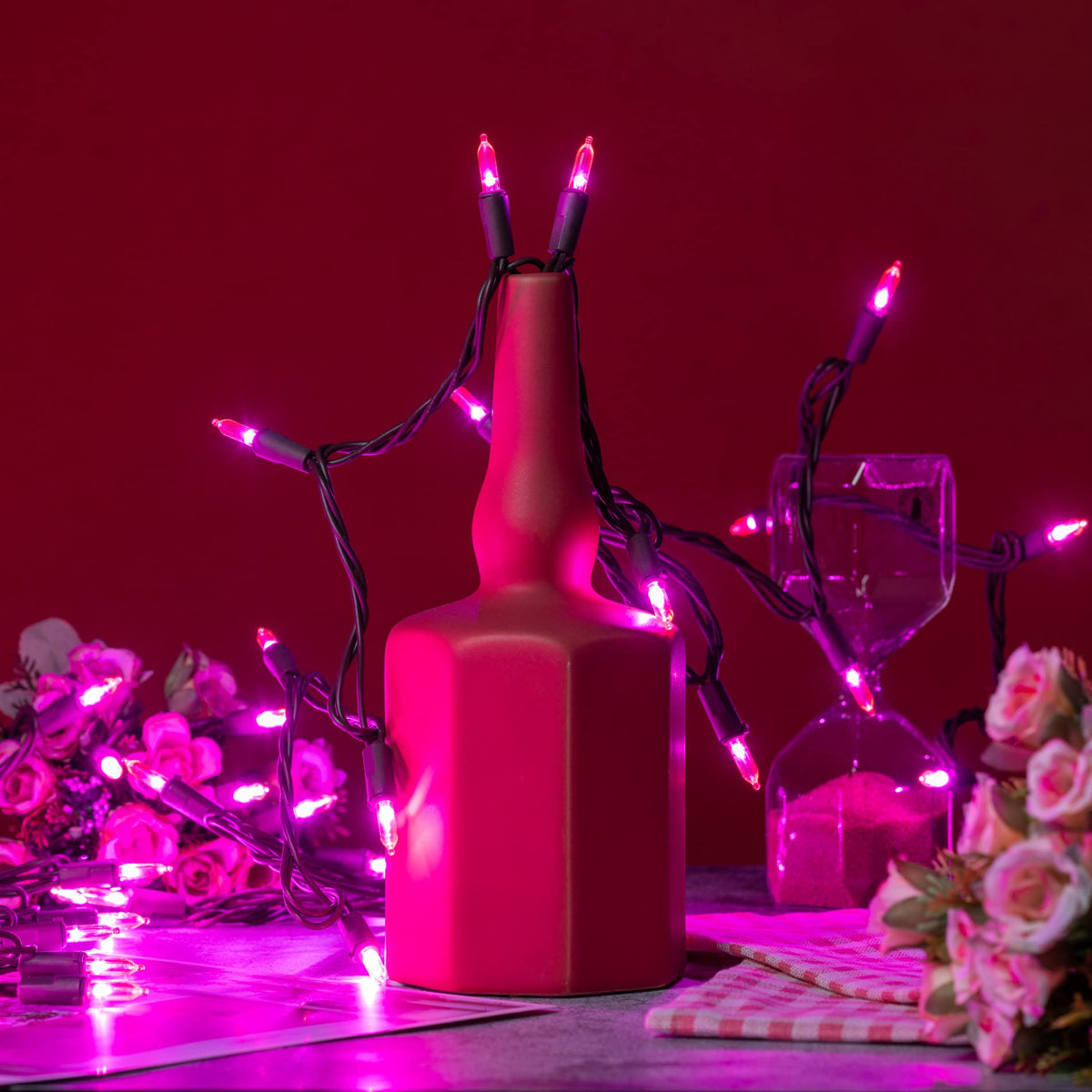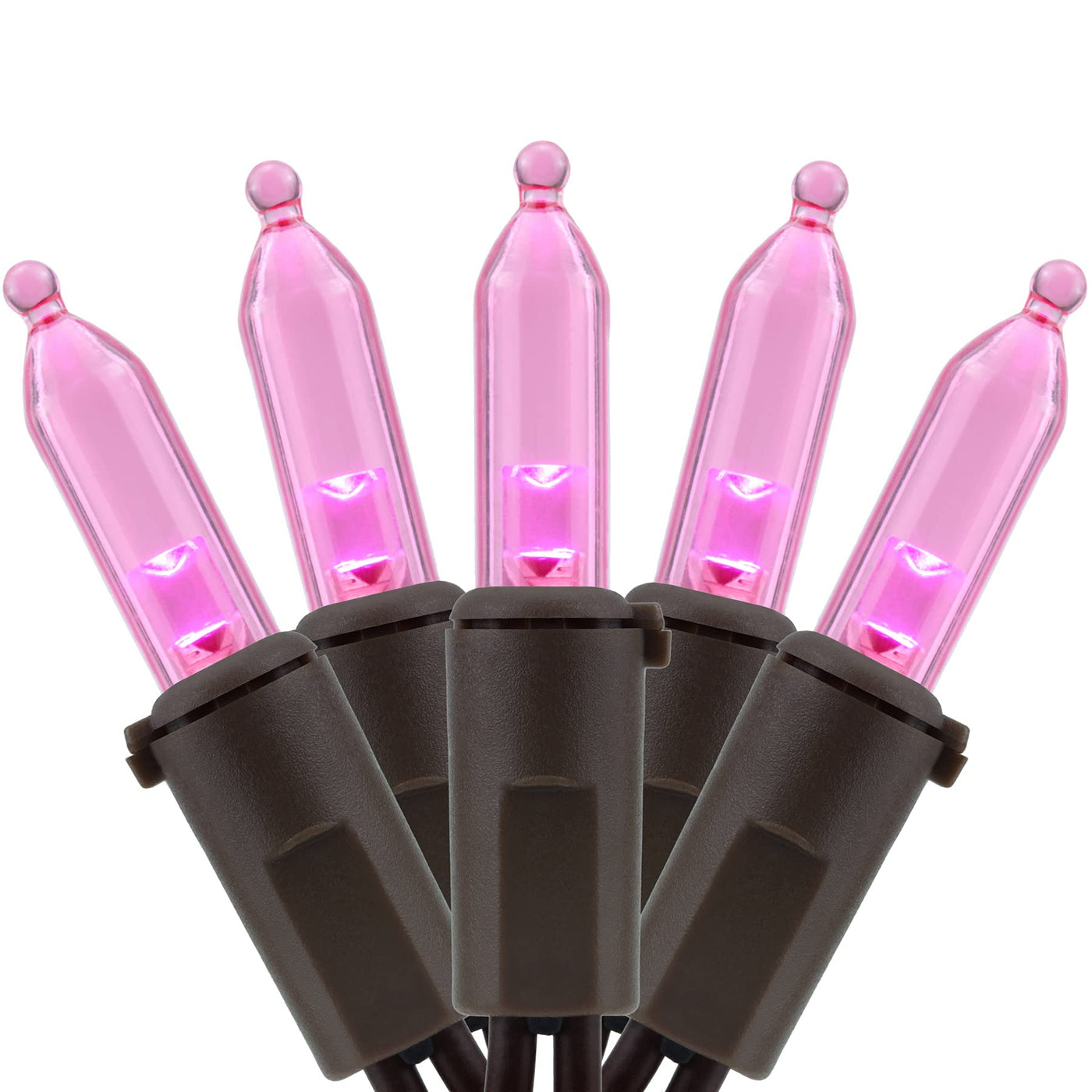 Yuletime 200 Pink Led Christmas Lights, 66 Feet Brown Wire Ul Certified Commercial Grade Holiday String Light Set