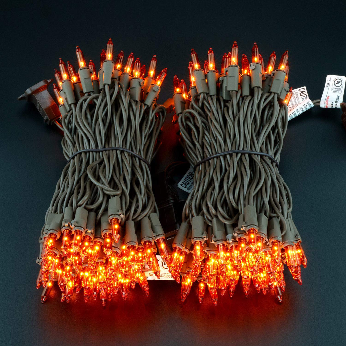 Yuletime 66 Ft Orange Christmas Lights, 200 Count Mini String Lights, Ul Certified, Amber Incandescent, Brown Wire, Pack Of 2