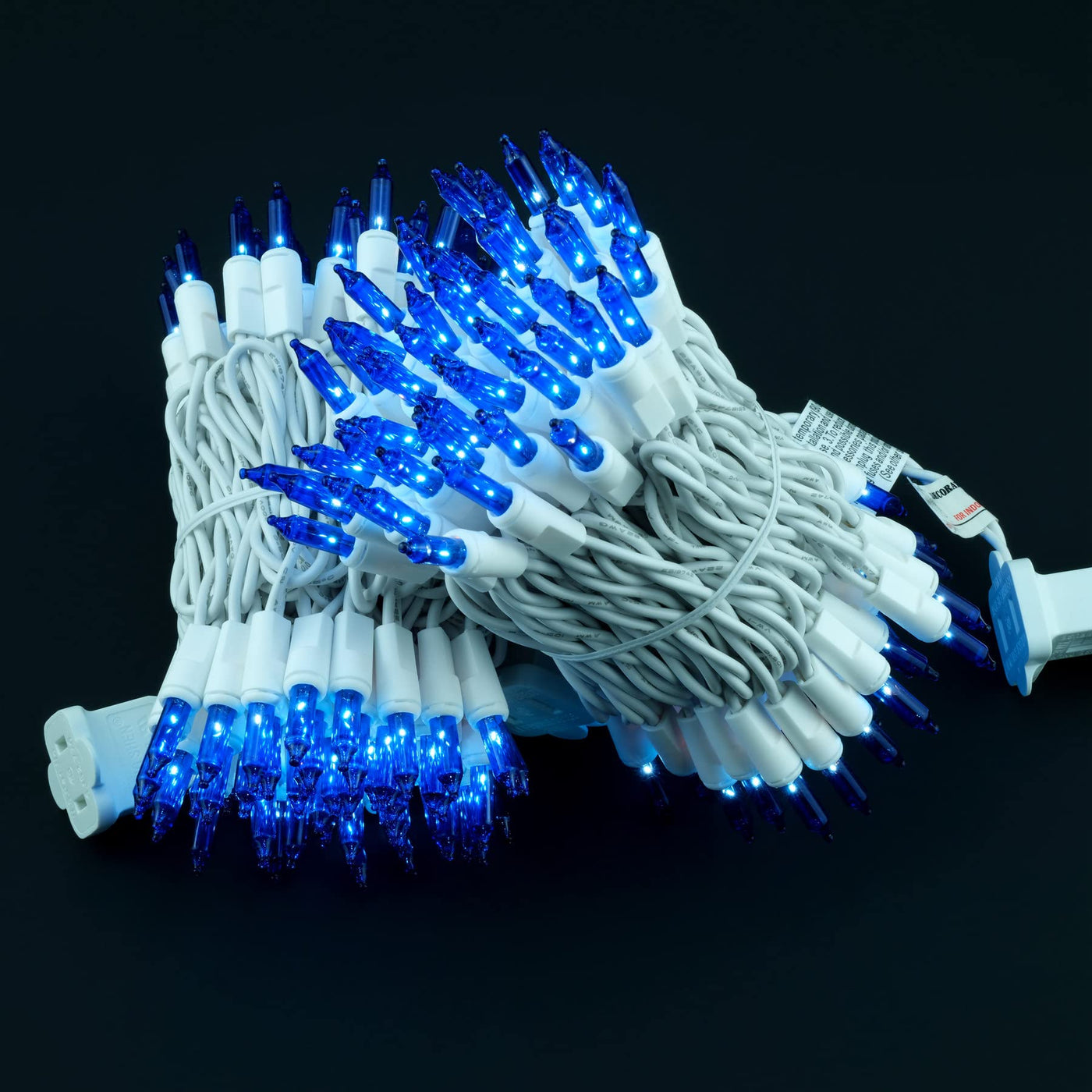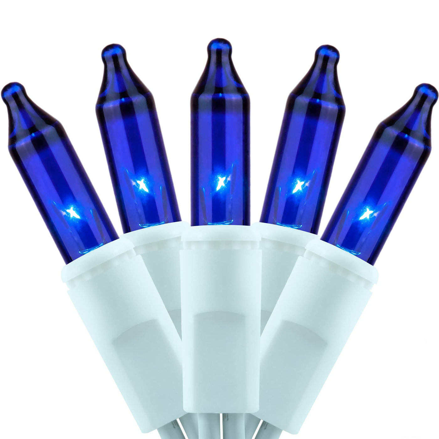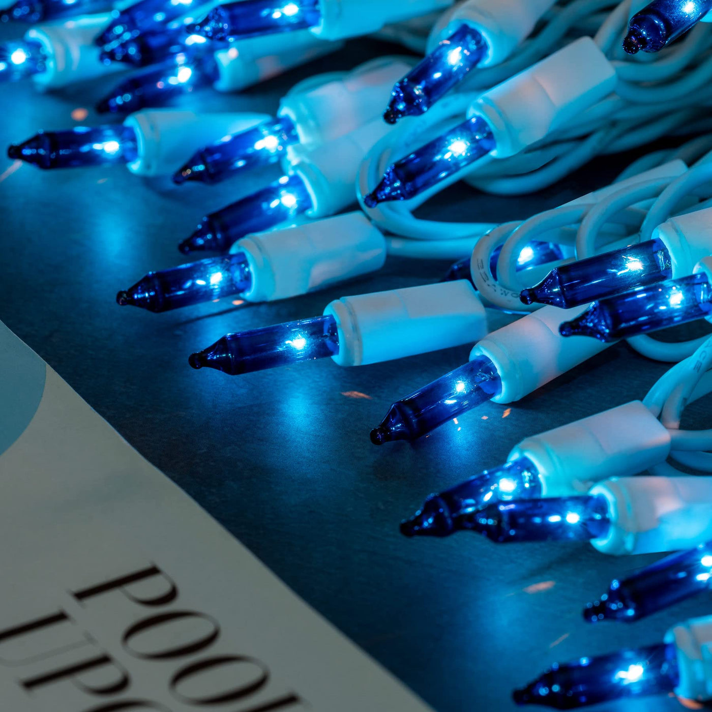 YULETIME Blue Christmas Lights, 200 Count Mini String Lights, 2 Strands of 21 ft, UL Certified, Glass, Blue - White Wire
