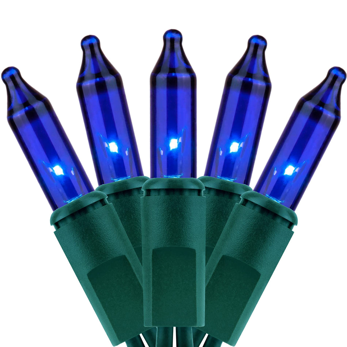 Q: How many lights are included in each strand?A: Each strand of the YULETIME Blue Christmas Lights contains one hundred bulbs, with a total of two hundred bulbs included in the package.