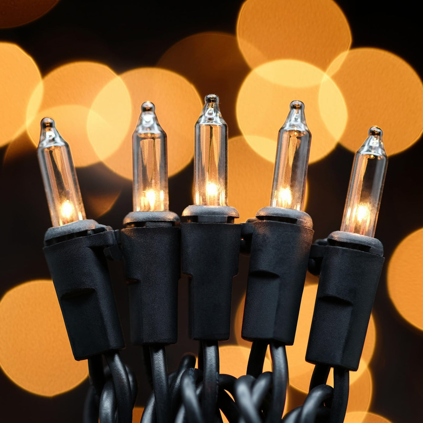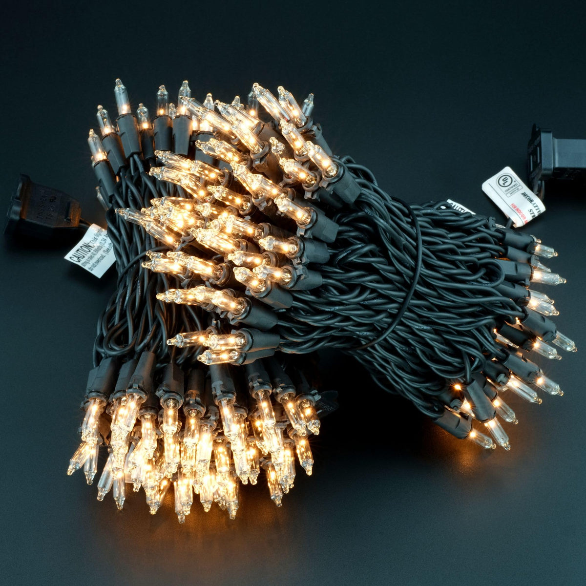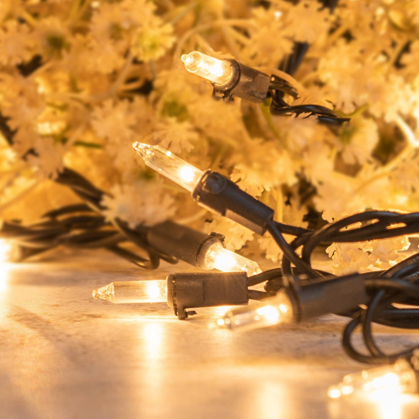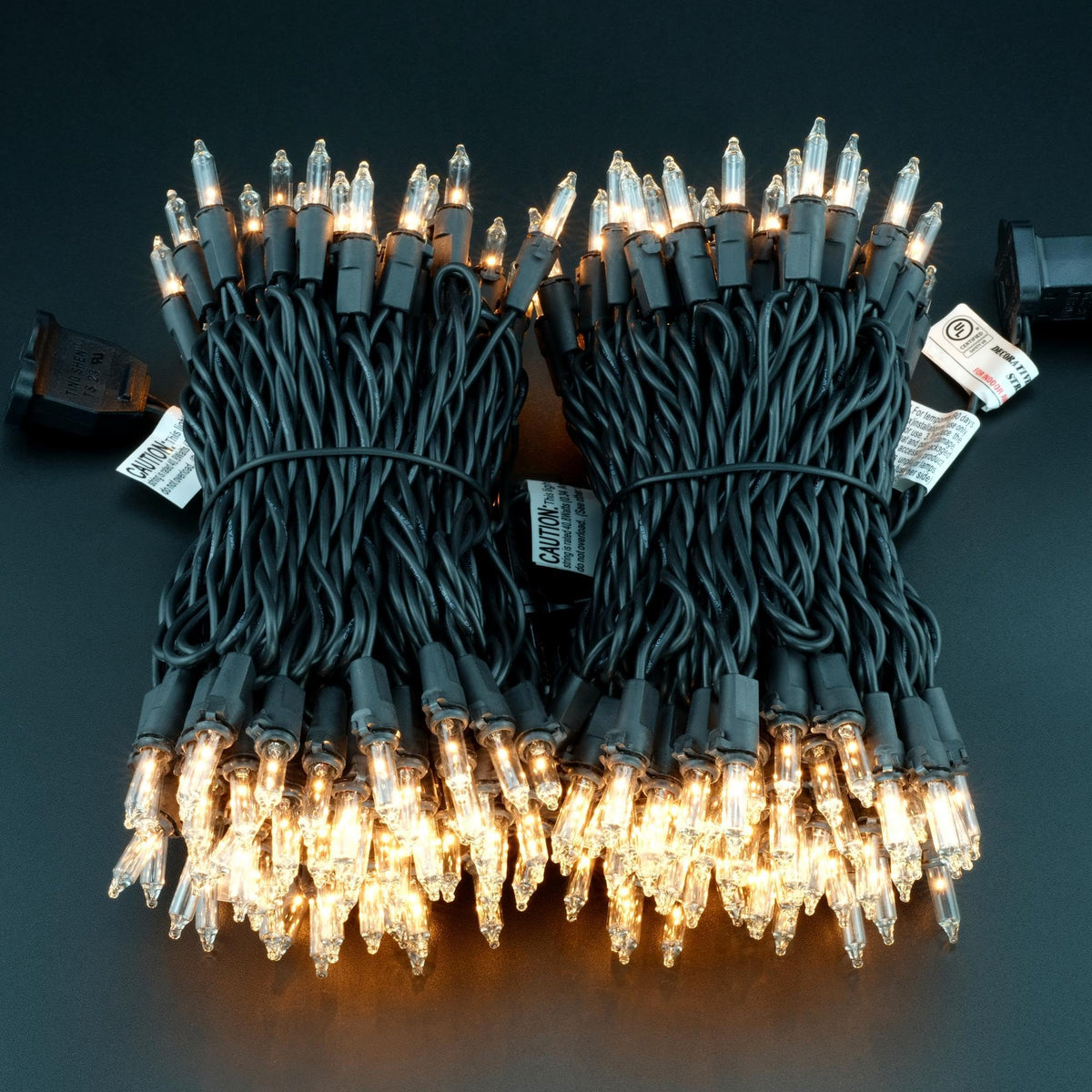 1. Two strands of 100 lights in one package. 2. Based on the working principle, incandescent bulbs warm up under operation. 3. The glass shell of the bulb can be broken. 4. Male and female plugs must not be wet or immersed in water. 5. End-to-end connections with more than 5 strands running simultaneously will blow the fuse. 6. Fuse is located in male plug and 2 replacement fuses included in each strand. 7. Additional fuses may be purchased locally at auto parts and hardware stores.