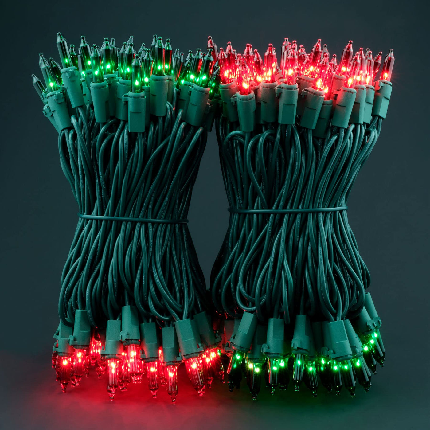 2 strands in 1 pack: 200 red and green mini bulbs on green wire, total length of 66 feet.