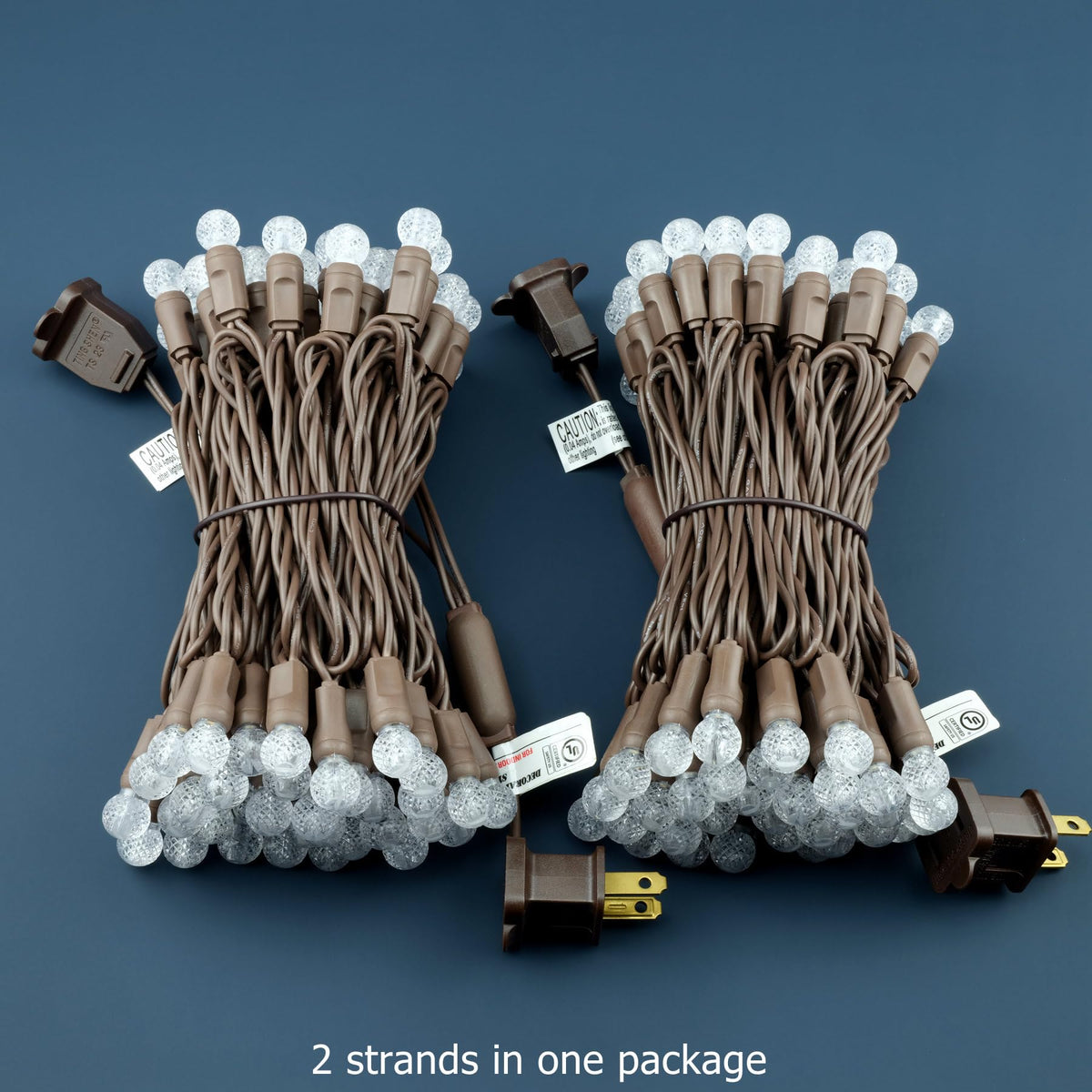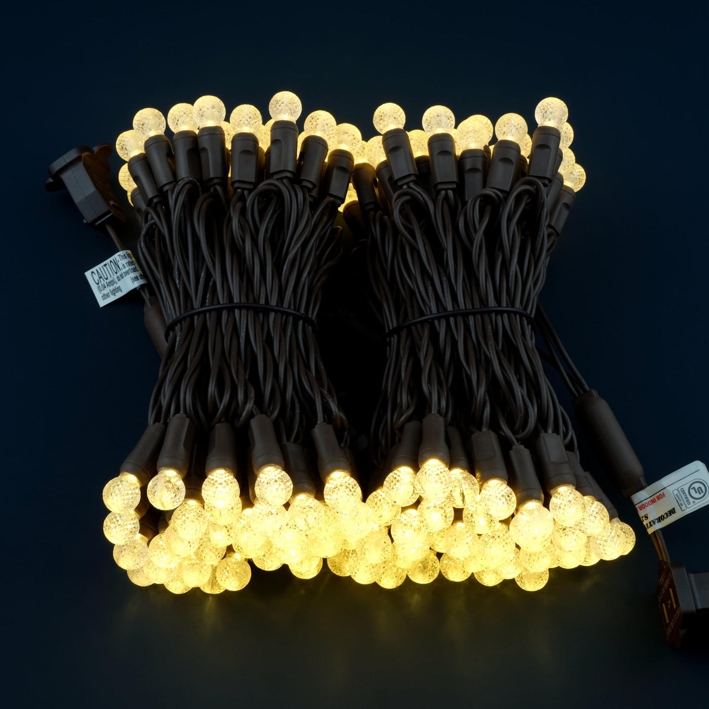 Two strands of 70 lights, with 24 feet per strand, featuring 4-inch spacing, 6-inch lead, and 6-inch tail.