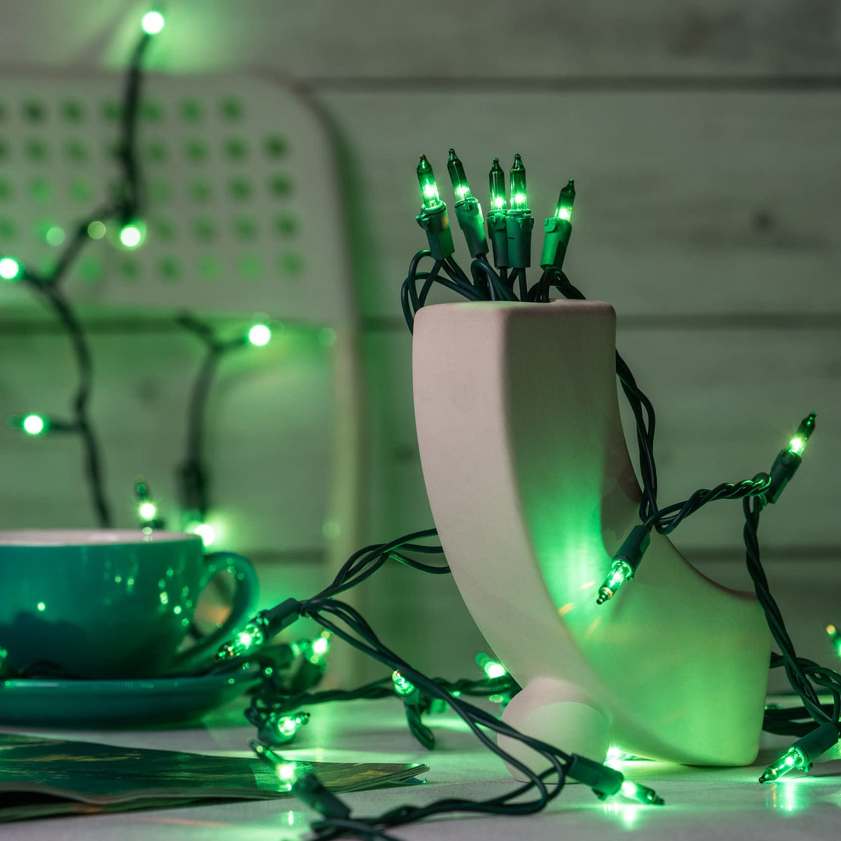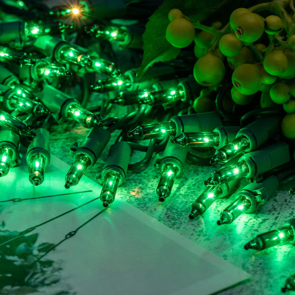 Vibrant Green Lights: 100 green mini bulbs per strand create a captivating glow.