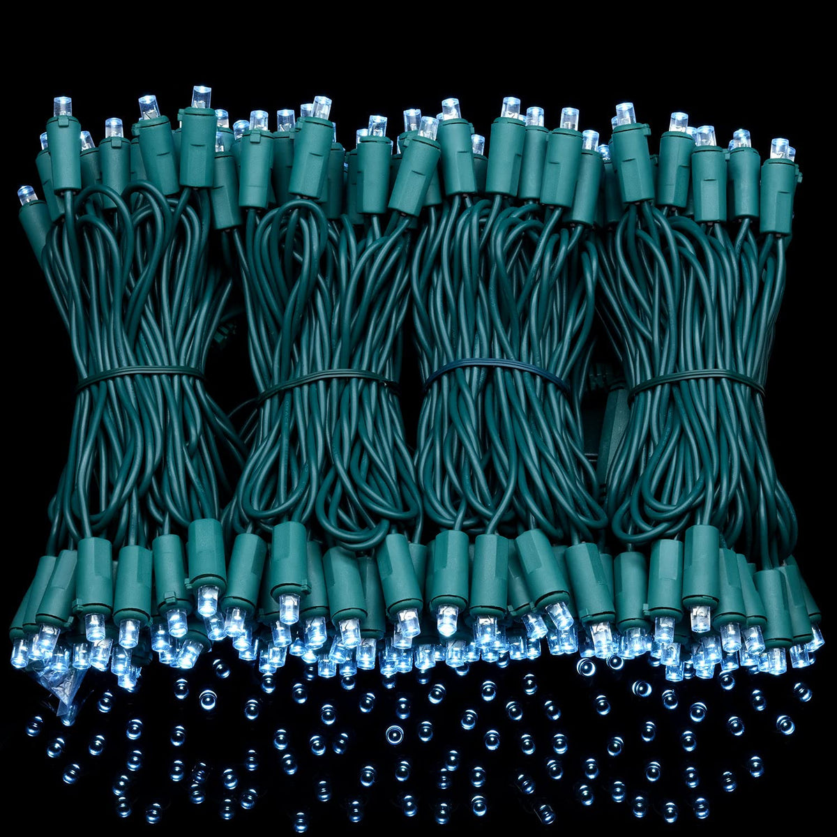 200 cool white 5mm LED bulbs on a 66-foot green wire.