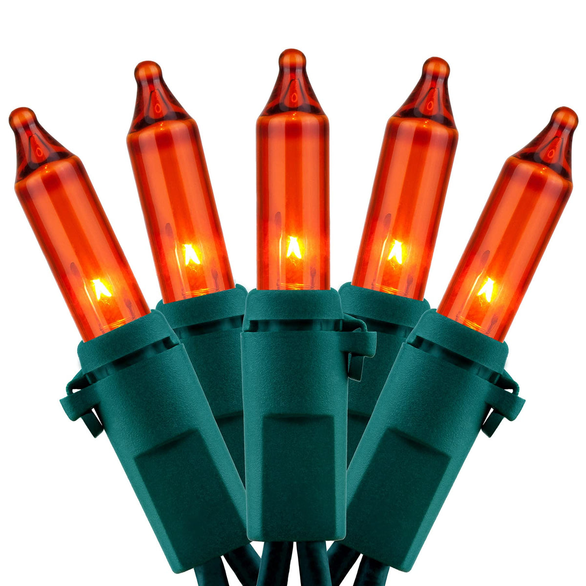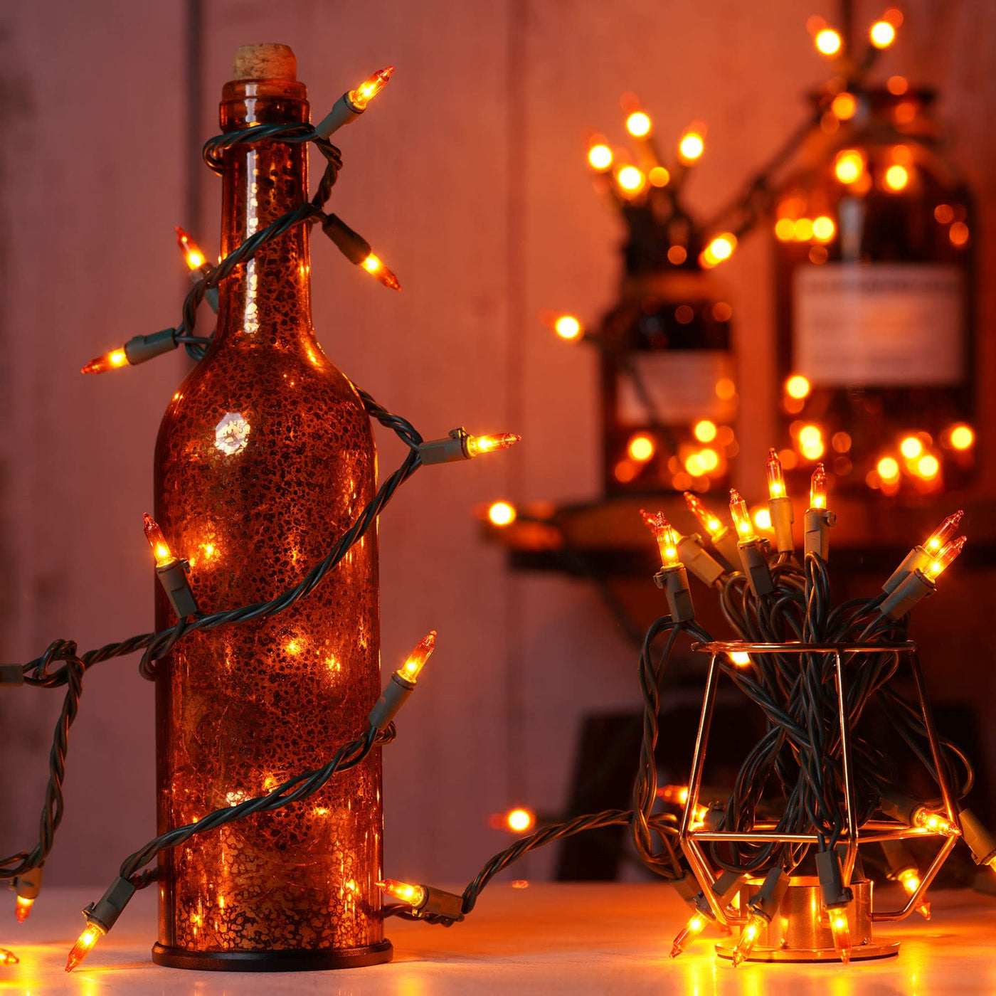 Two strands of 100 orange mini bulbs, totaling 66 feet in length.