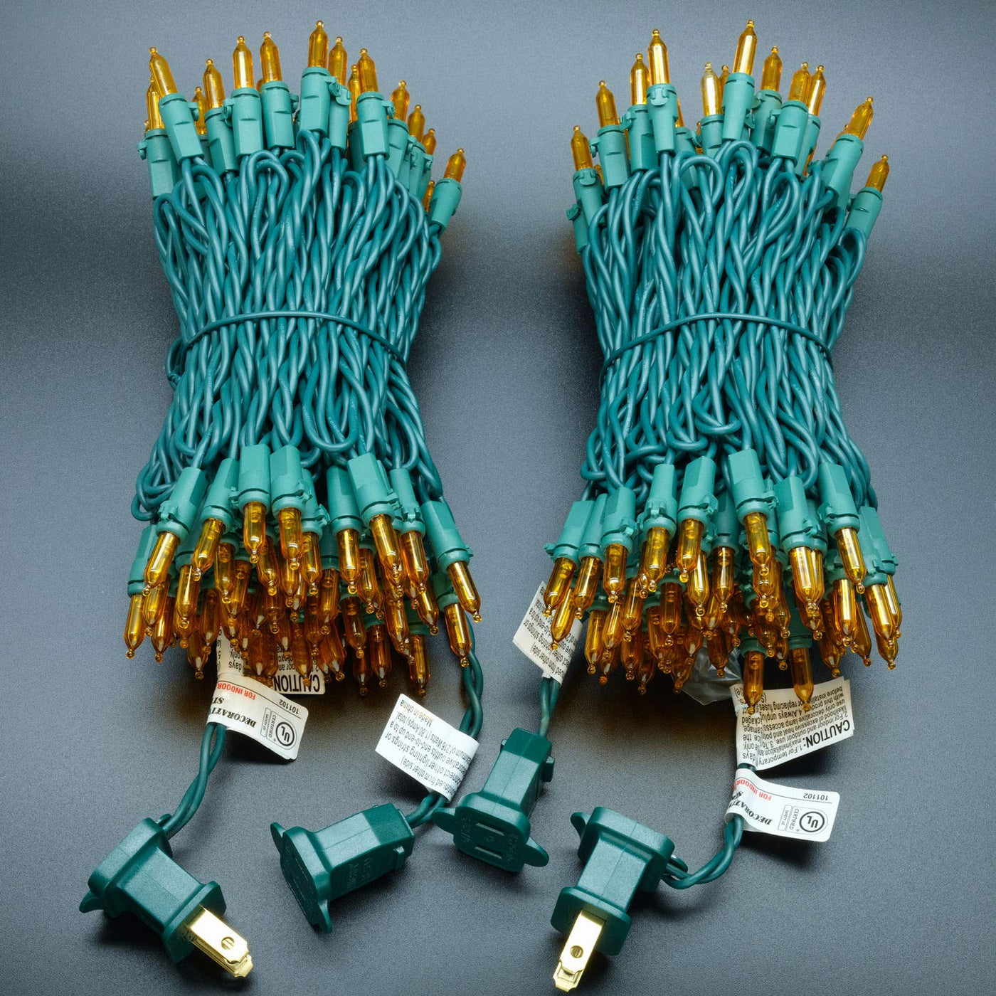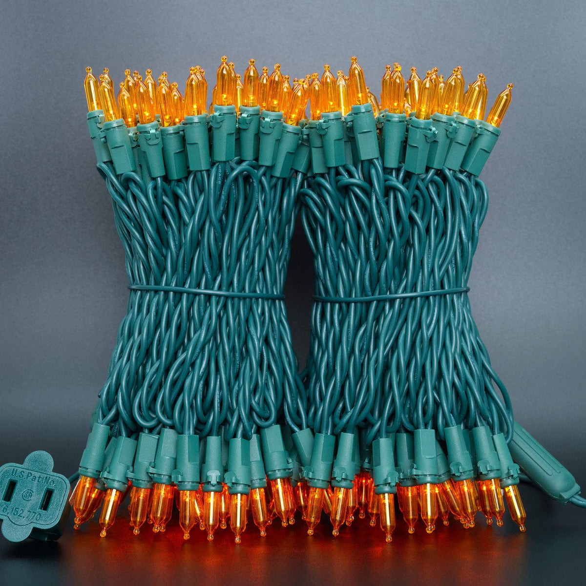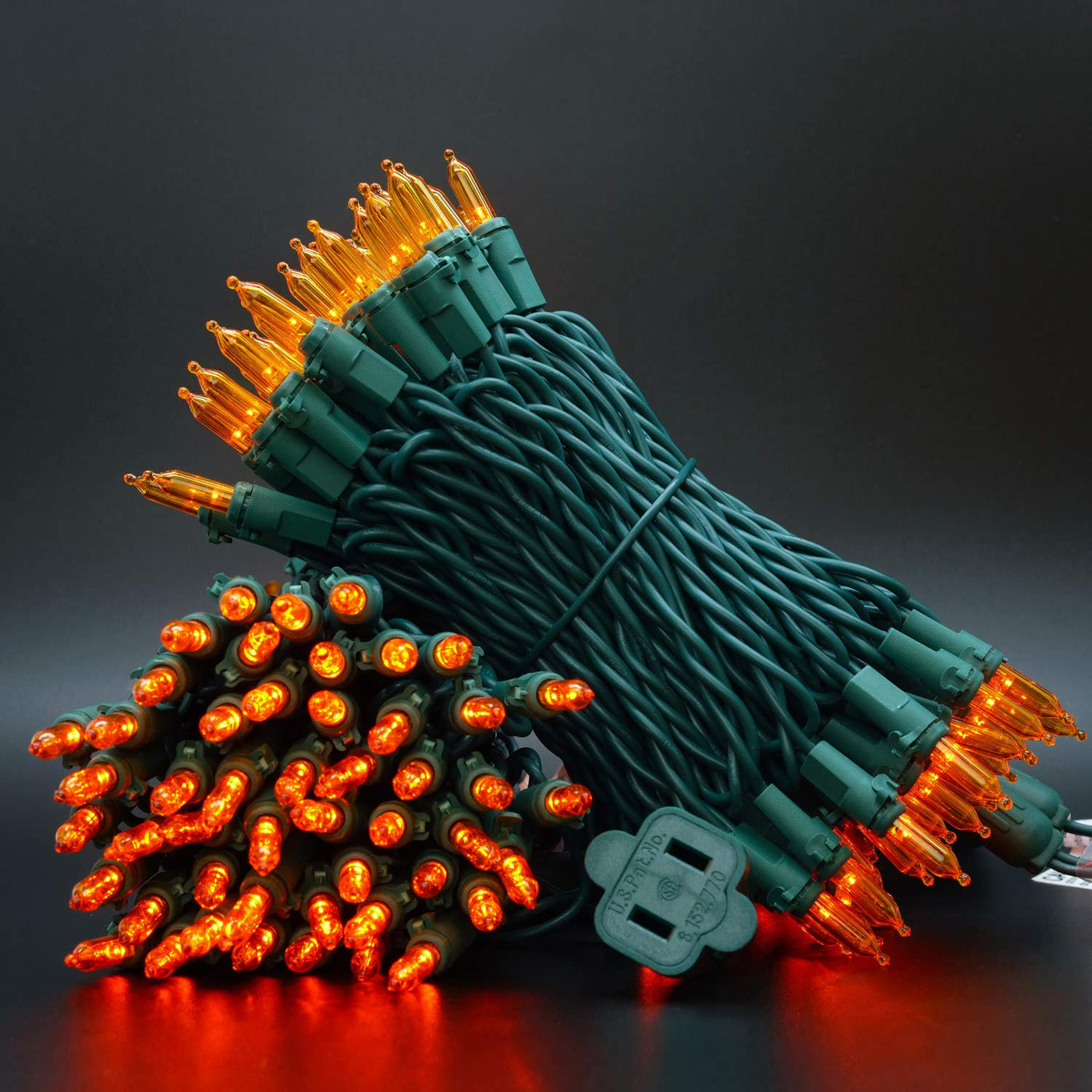 Yuletime Orange Led Christmas Lights 200 Count 50 Ft, Pack Of 2 Strands 25 Ft 100 Lights Ul Certified Halloween String Light Set (Orange) Specifications Led Light Color: Orange Light Display: Steady Bulb Type: Led Bulb Shape: Mini Bulb Material: Acrylic Removable Bulbs: Yes Average Hours: 50,000 Voltage: 120 V Wire Color: Green Wire Gauge: 22 Awg Male Plug: Fused/Stackable Female Plug: End-To-End Rating: Ul Certified Grade: Premium Fire Resistance Rating: Class A 105? Ingress Protection Rating: Ip44 Usage: Indoor / Outdoor Dimensions: - Total Length: 25.5 Ft X 2 - Lead: 4 In - Spacing: 3 In - Tail: 4 In Actual Power: - 4.8 Watts / Strand - 216 Watts End-To-End Maximum - 45 Strands Maximum Connection What'S In The Box: 2 X 100 Led Orange String Lights 4 X Extra Fuse 4 X Extra Led Bulbs 1 X User Manual Warm Tips. 1. Two Strands Of 100 Lights In One Package. 2. Male And Female Plugs Must Not Be Wet Or Immersed In Water. 3. End-To-End Connections With More Than 45 Strands Running Simultaneously Will Blow The Fuse. 4. Fuse Is Located In Male Plug And 2 Replacement Fuses Included In Each Strand. 5. Additional Fuses May Be Purchased Locally At Auto Parts And Hardware Stores.