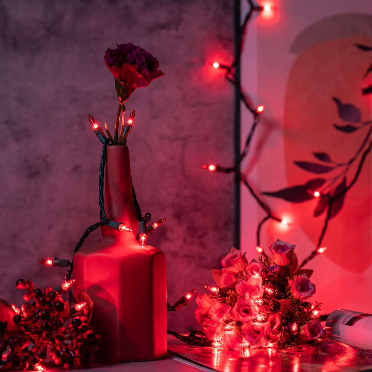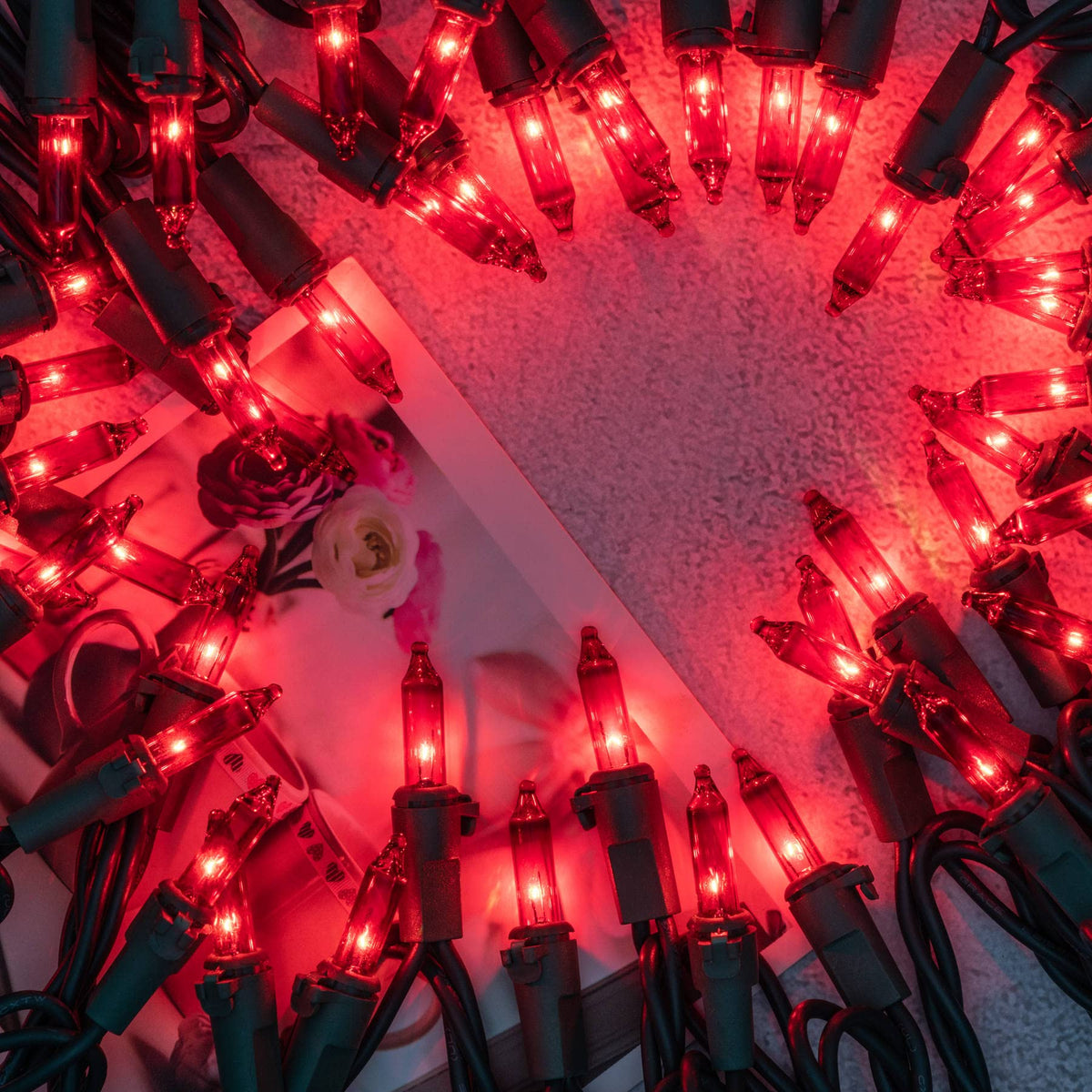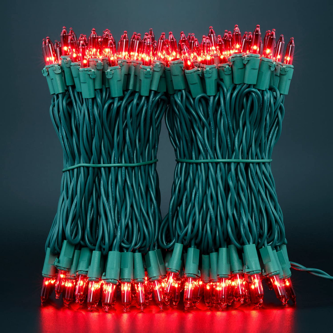 Yuletime Red Christmas Lights With Green Wire, 66 Feet 200 Count Ul Certified String Lights, Pack Of 2 Sets 33 Ft 100 Count Incandescent Mini Light Set (Red)