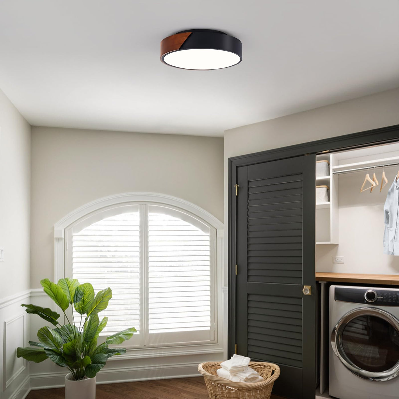 Yumpaug Modern Black Flush Mount Ceiling Light, 2-Light Mid-Century Ceiling Light Fixture, Minimalistic Wood Round Lighting Fixt